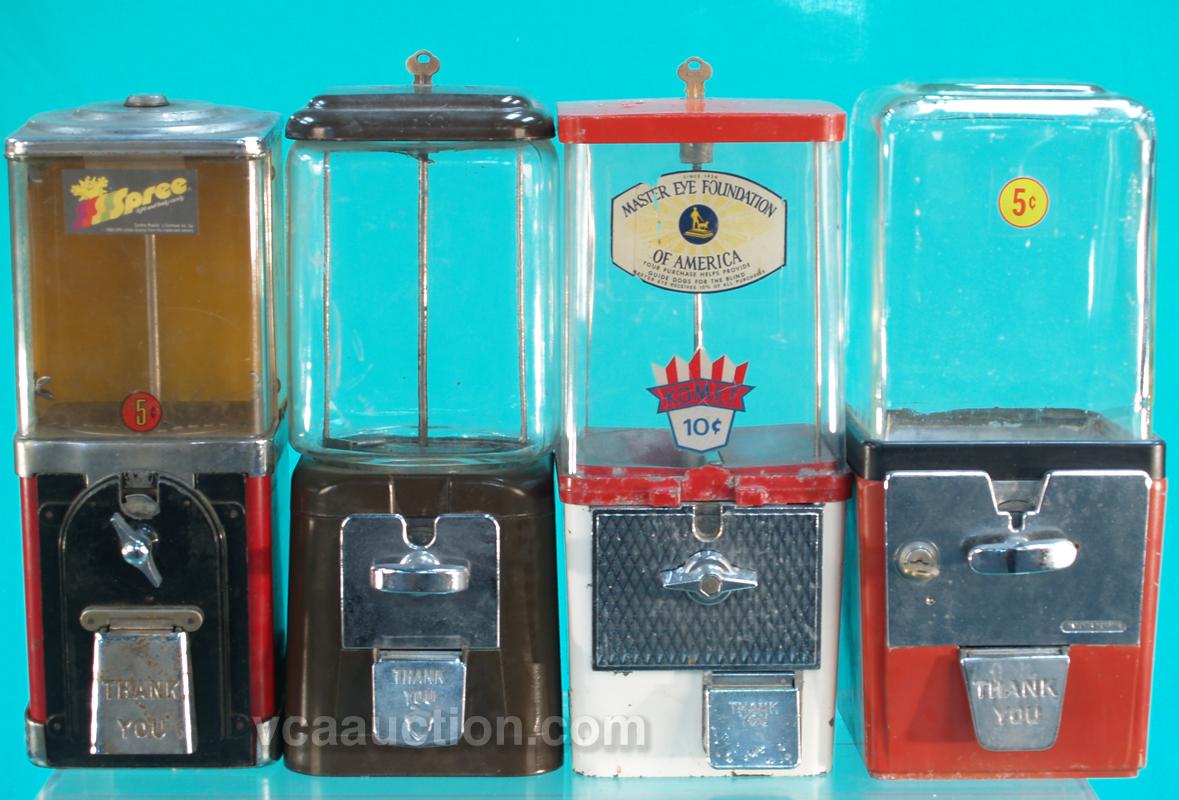 Lot Of 4 Various Model Gumball Vending Machines C. 1950's - 1960's