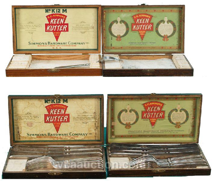 Lot Of 4 Wooden Keen Kutter Boxes: 2 - empty & 2 - w/ forks & knives.