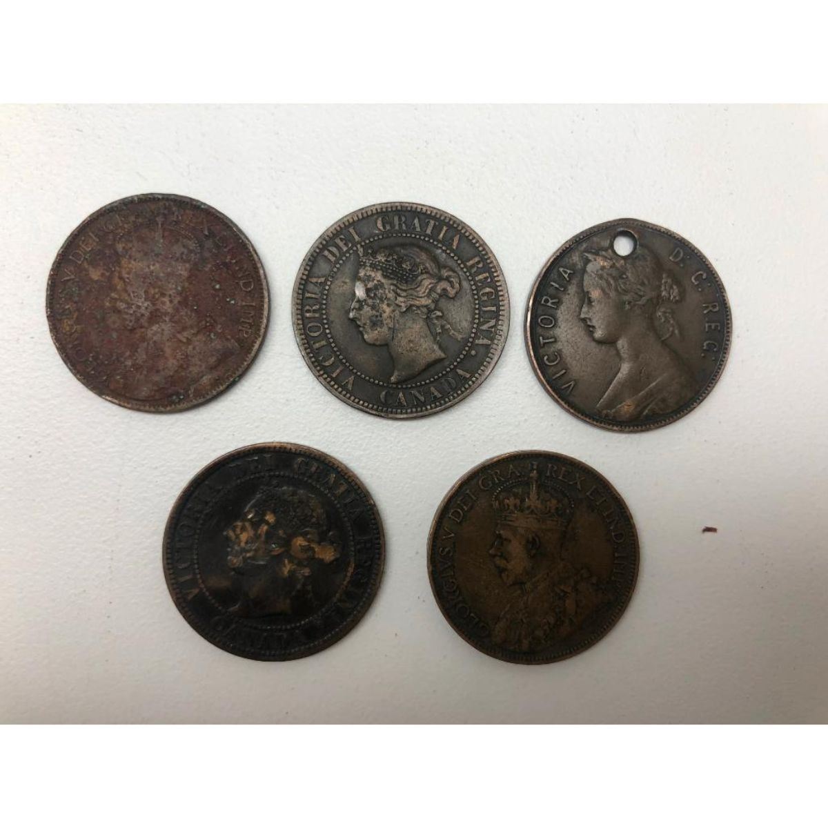 Lot Of 5 1872-1912 Canadian One Cent Coins. A Variety Of Coins Ranging From 1872-1912. View Photos For Further Details.