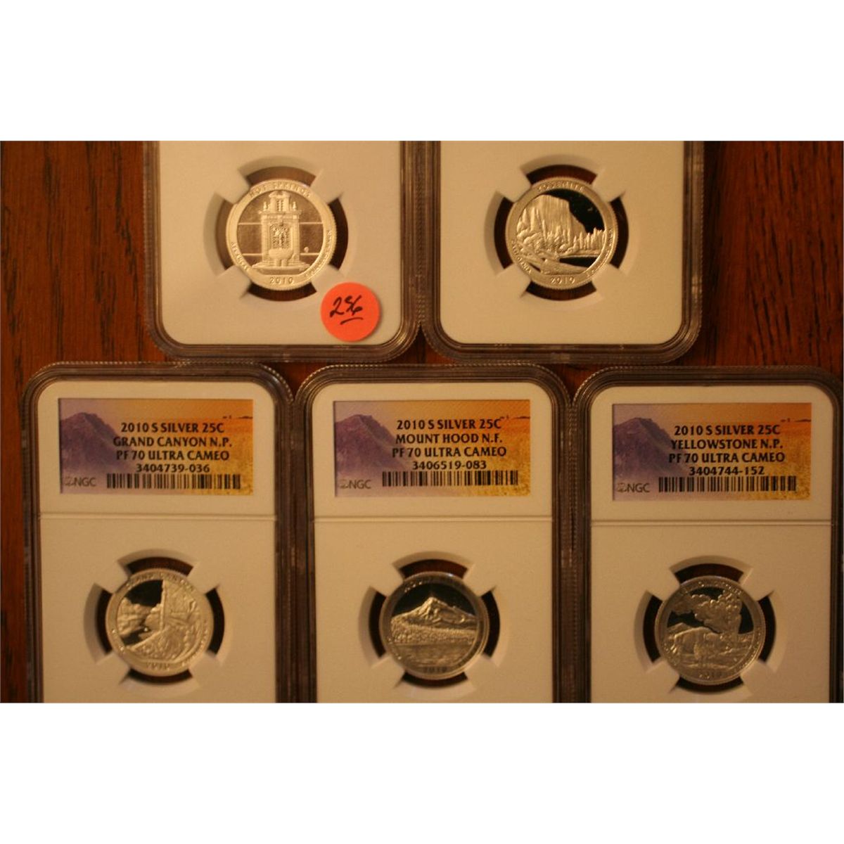 Lot Of 5 2010S National Park Silver Quarters(NGC-PF70)UC