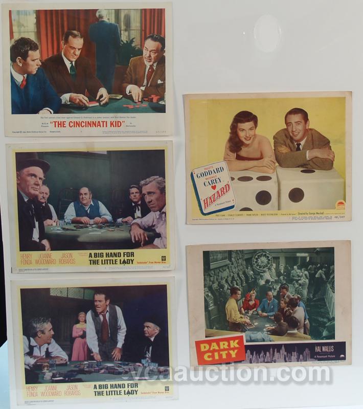 Lot Of 5 Poker And Various Gambling Single Sheet Authentic Movie Posters: 1 - The Cincinnati Kid 1965, 1 - Dark City 1950, 1 - Hazard 1948 & 2 - A Big Hand For The Little Lady 1966, in good condition - each 14" x 11"