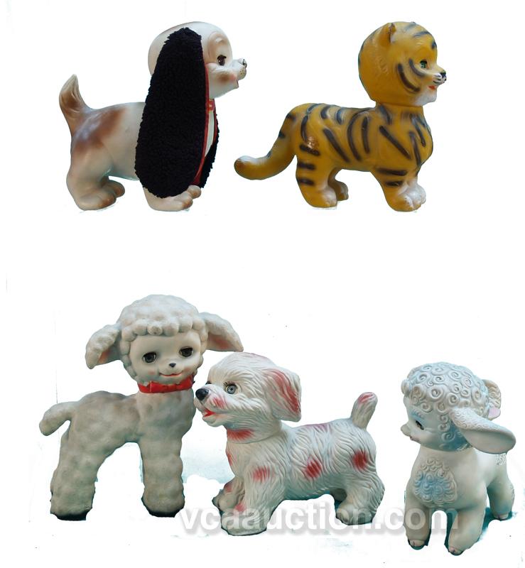 Lot Of 5 Rubber Animal Squeaky Toys w/ blinking eyes