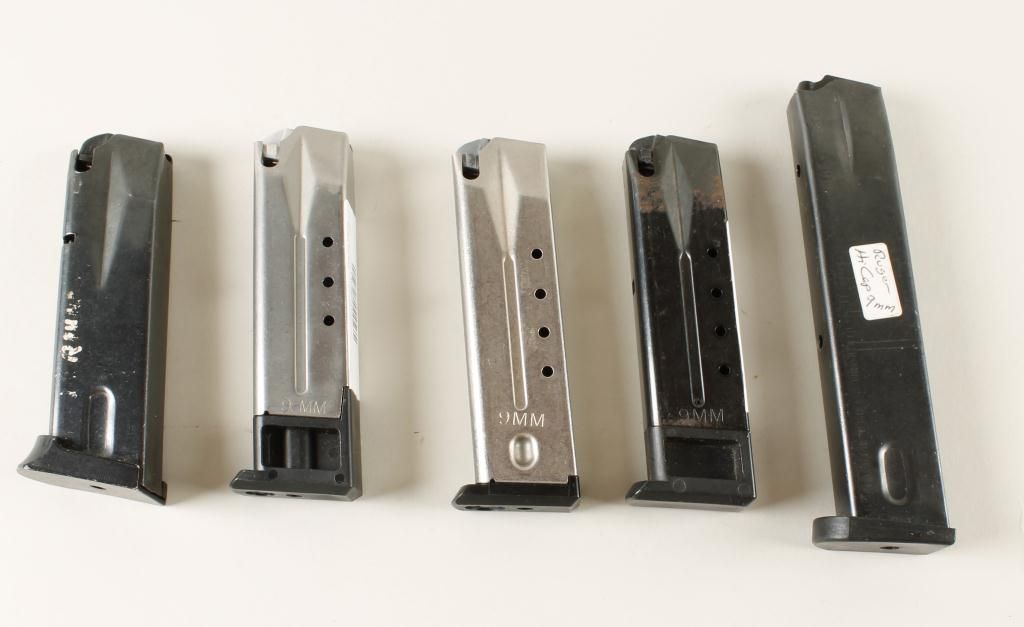 Includes (2) P85, 15 round 9mm magazines, (1) P85, 20 round 9mm magazine, and (2) P89, 10 round 9mm magazines.