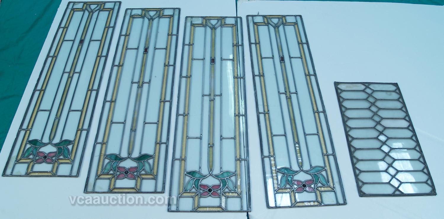 Lot Of 5 Stained Glass Panels: 1 - 21" x 11" & 4 - matching from a soda fountain - each 11" x 39"