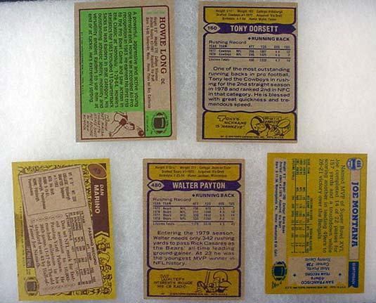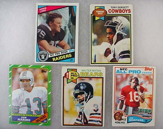 Lot Of 5 Vintage Topps Football Cards - All Stars - 1982 Joe Montana, 1979 Walter Payton, 1979 Tony Dorsett, 1984 Howie Long, 1986 Dan Marino