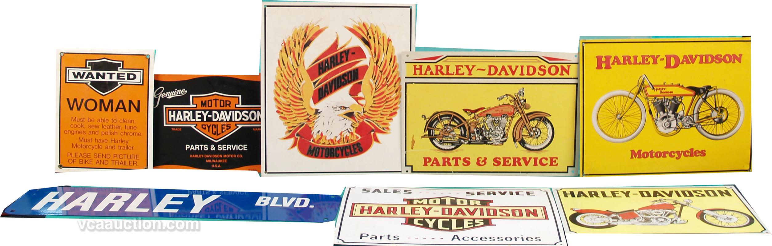 Lot Of 8 Harley Davidson Signs, Some Porcelain (Reproductions)