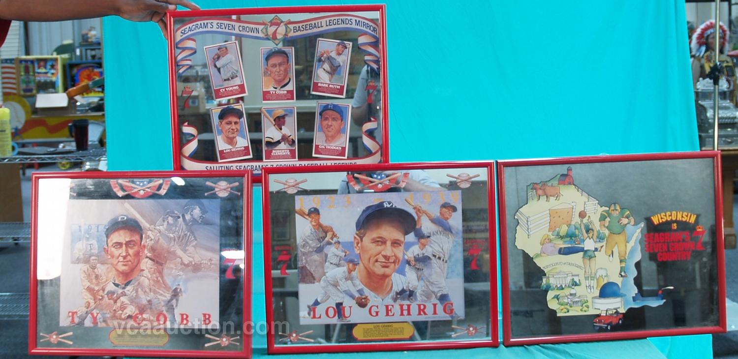 Lot Of 8 Seagram's Baseball Hero's w/ 1 All Kind Of Sports, Mirrored Advertisement's - each 20" x 16"