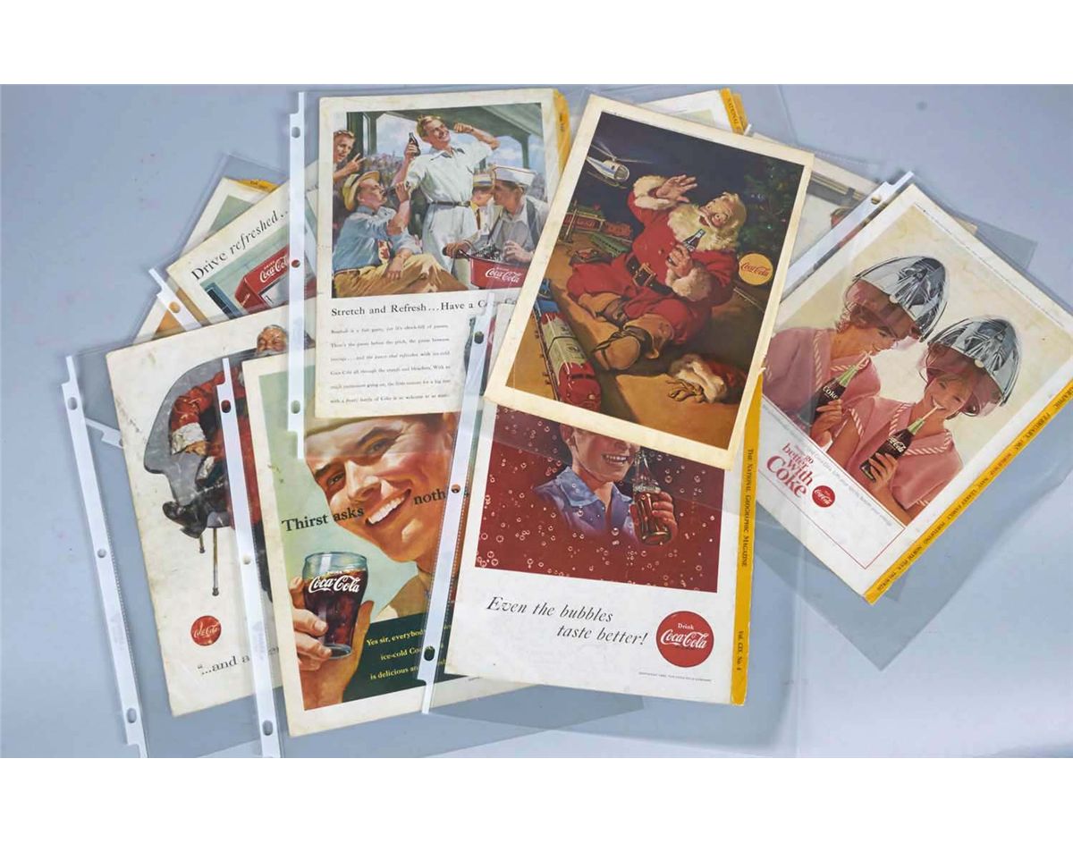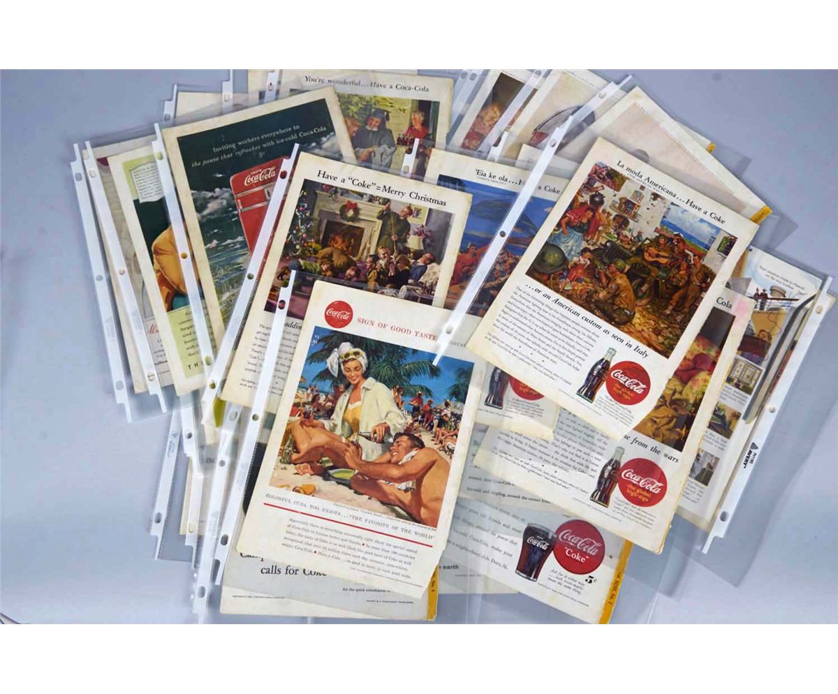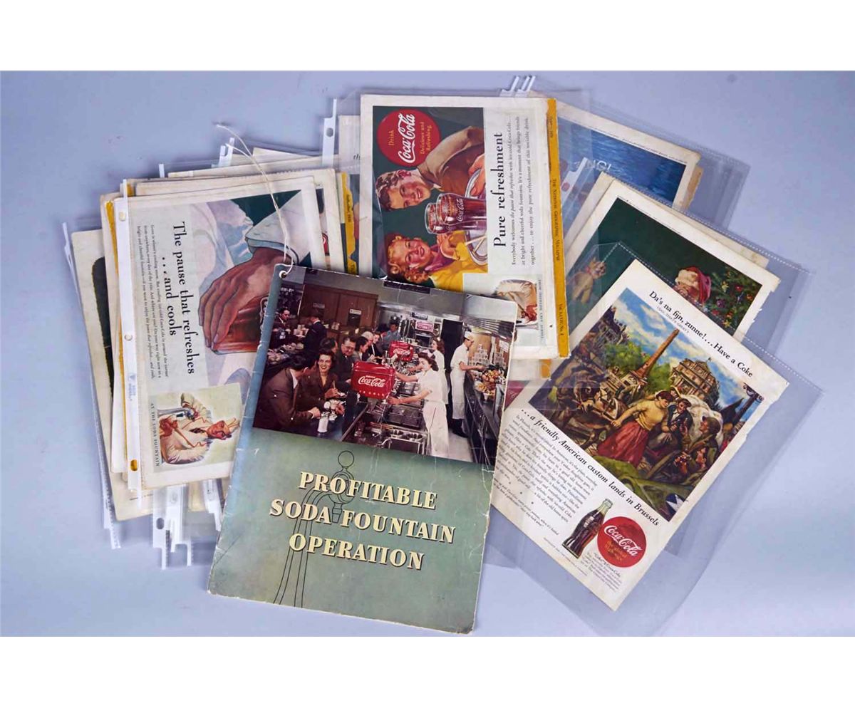 Including 80- Coke advertisements from the back cover of the National Geographic Magazine from the 1930s to the 1960s, (10" x 7"), 2 - Texaco Fire Chief ads circa 1930s (10" x 7"), and 1 - Profitable Soda Fountain Operation manual printed by the Coca-Cola