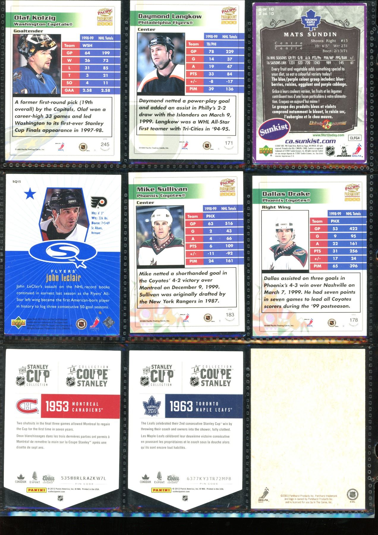 Lot Of 9 Hockey Insert Cards Various Teams & Players