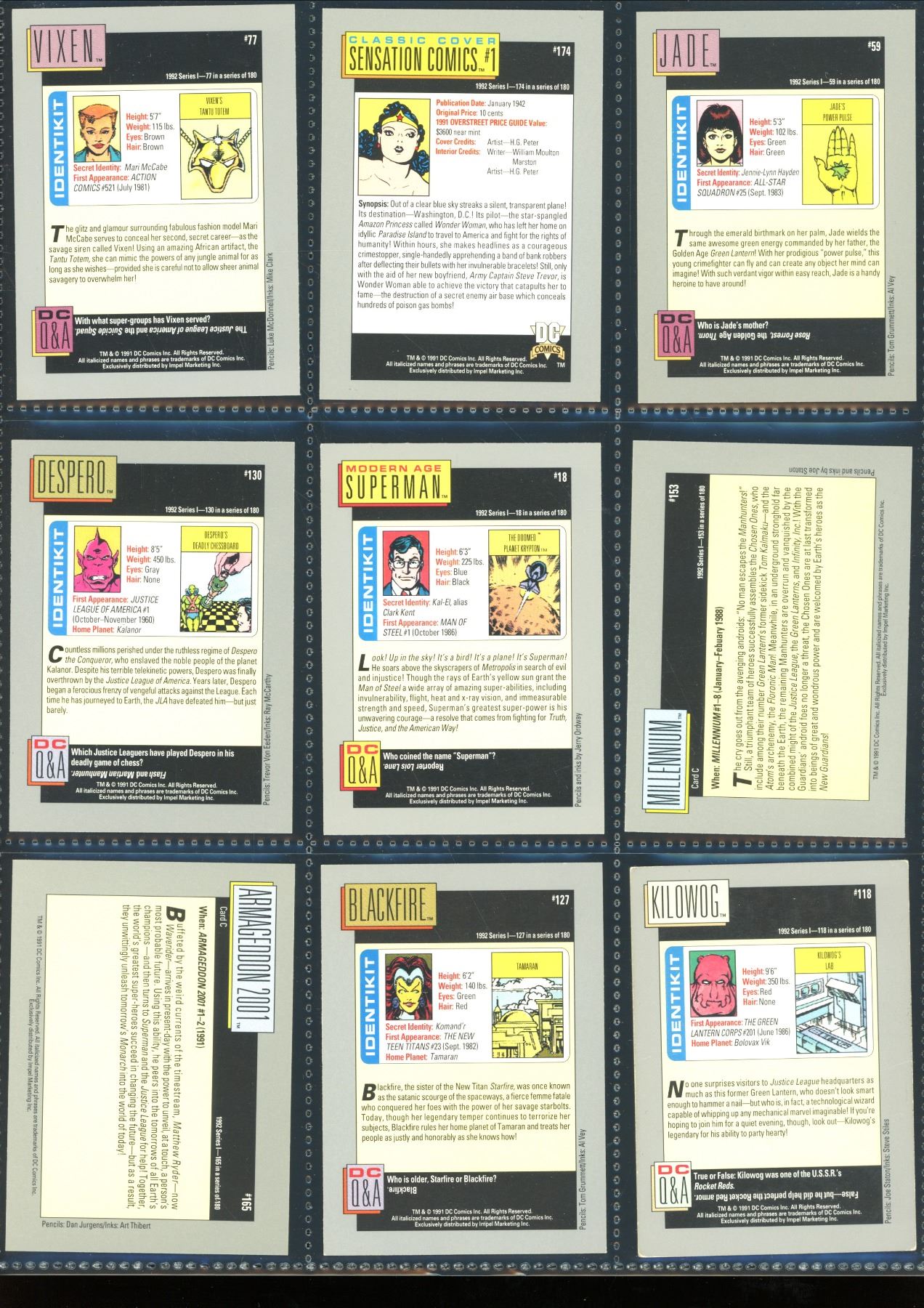 Lot Of 9 Various DC Collector Cards