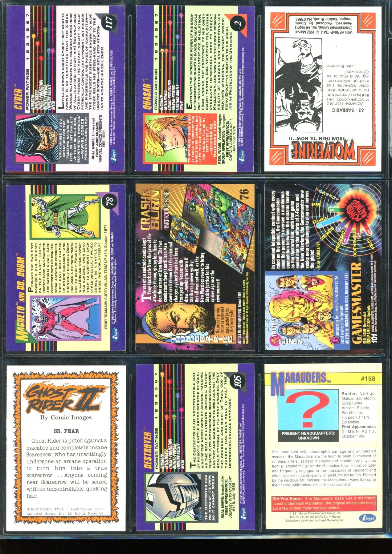 Lot Of 9 Various Marvel Collector Cards
