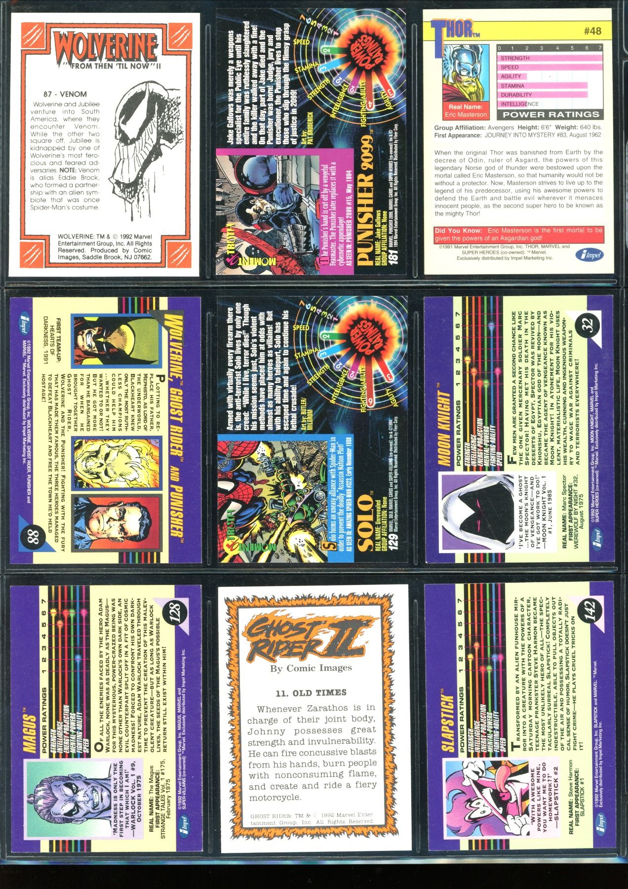 Lot Of 9 Various Marvel Collector Cards