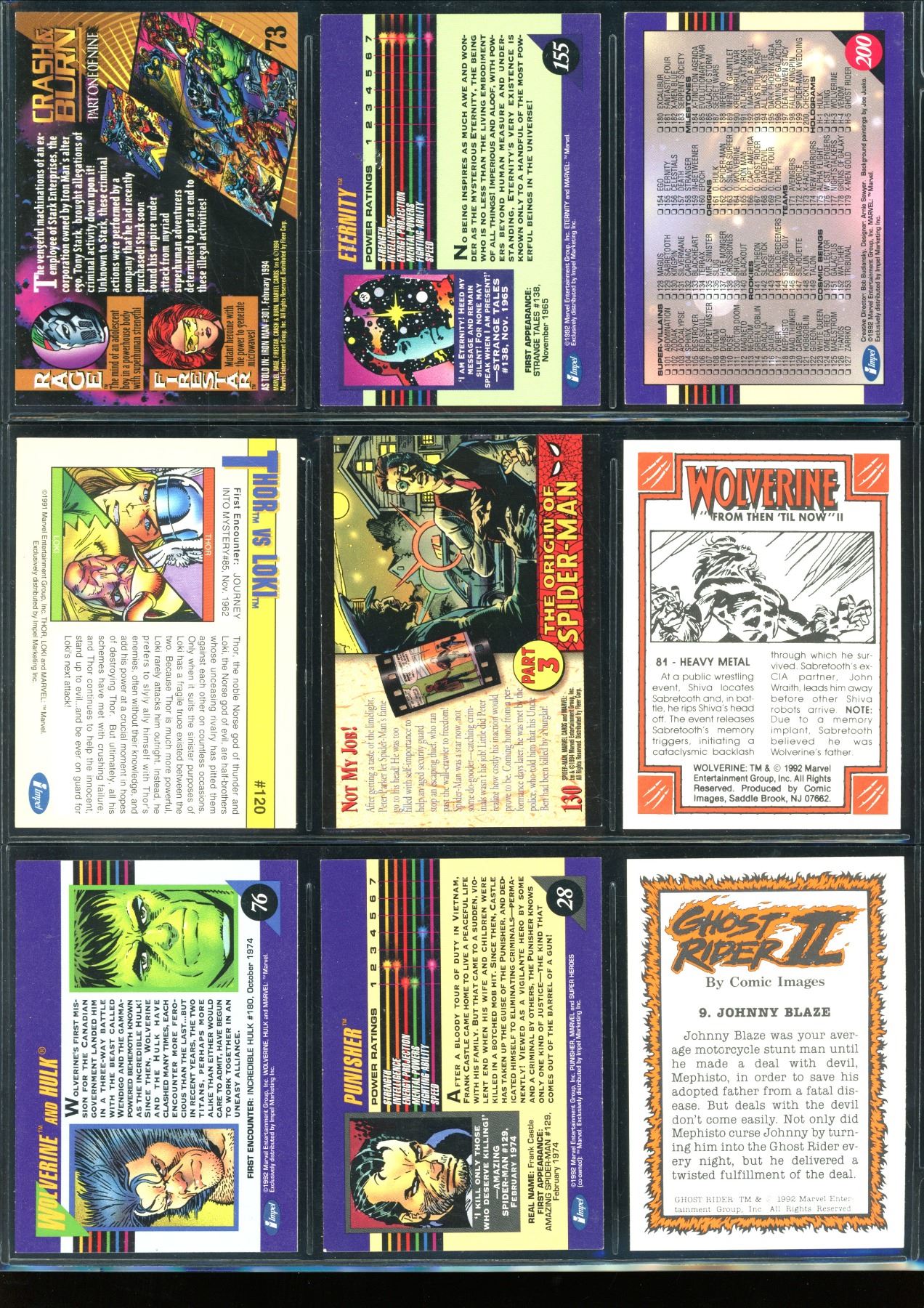 Lot Of 9 Various Marvel Collector Cards