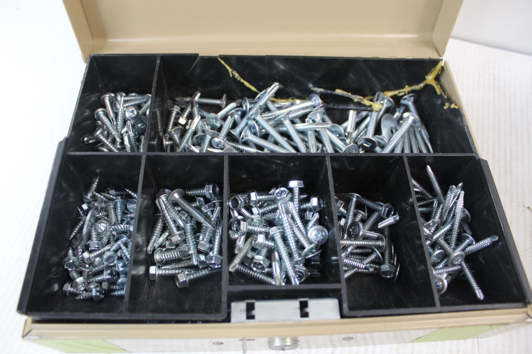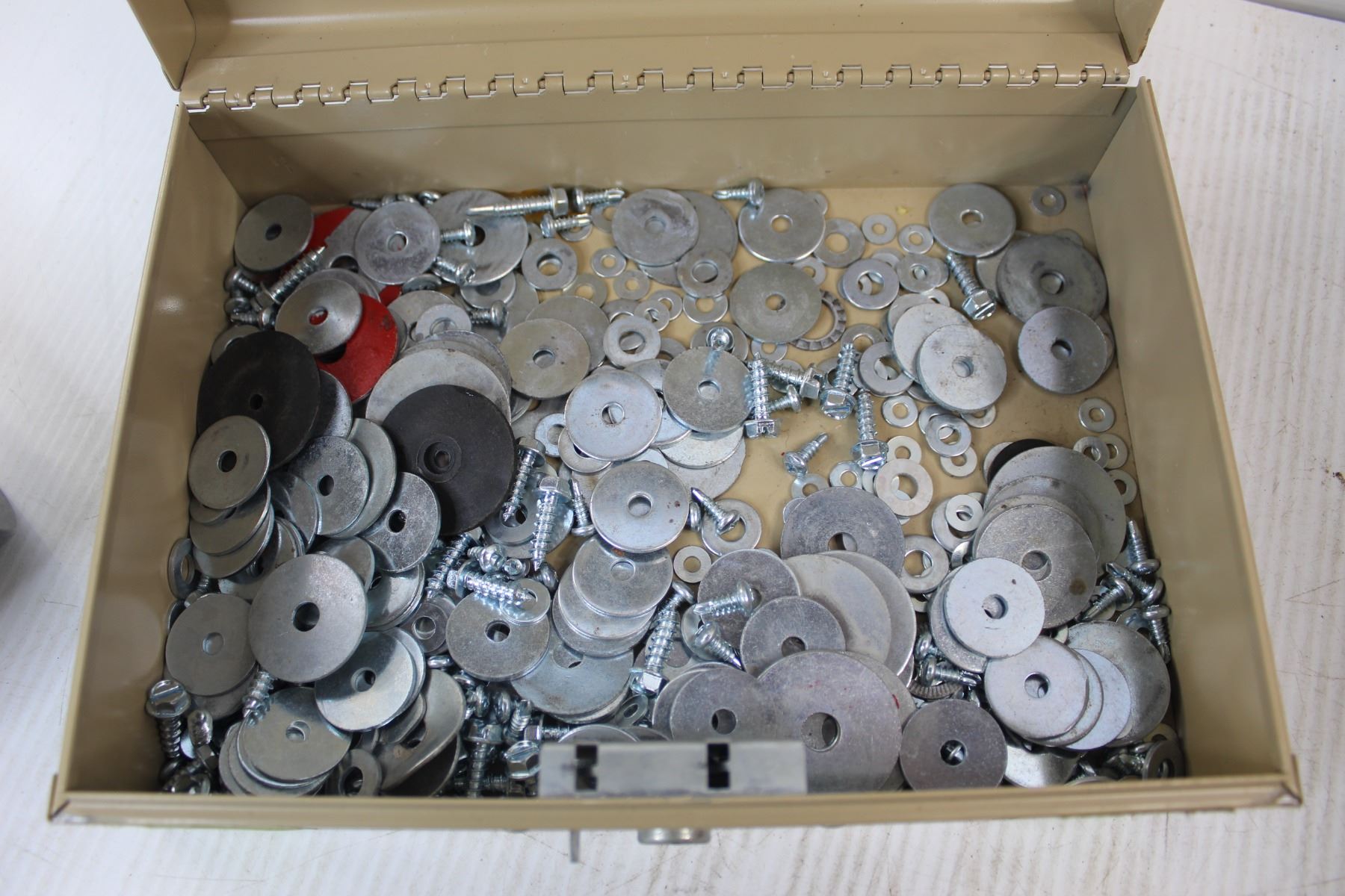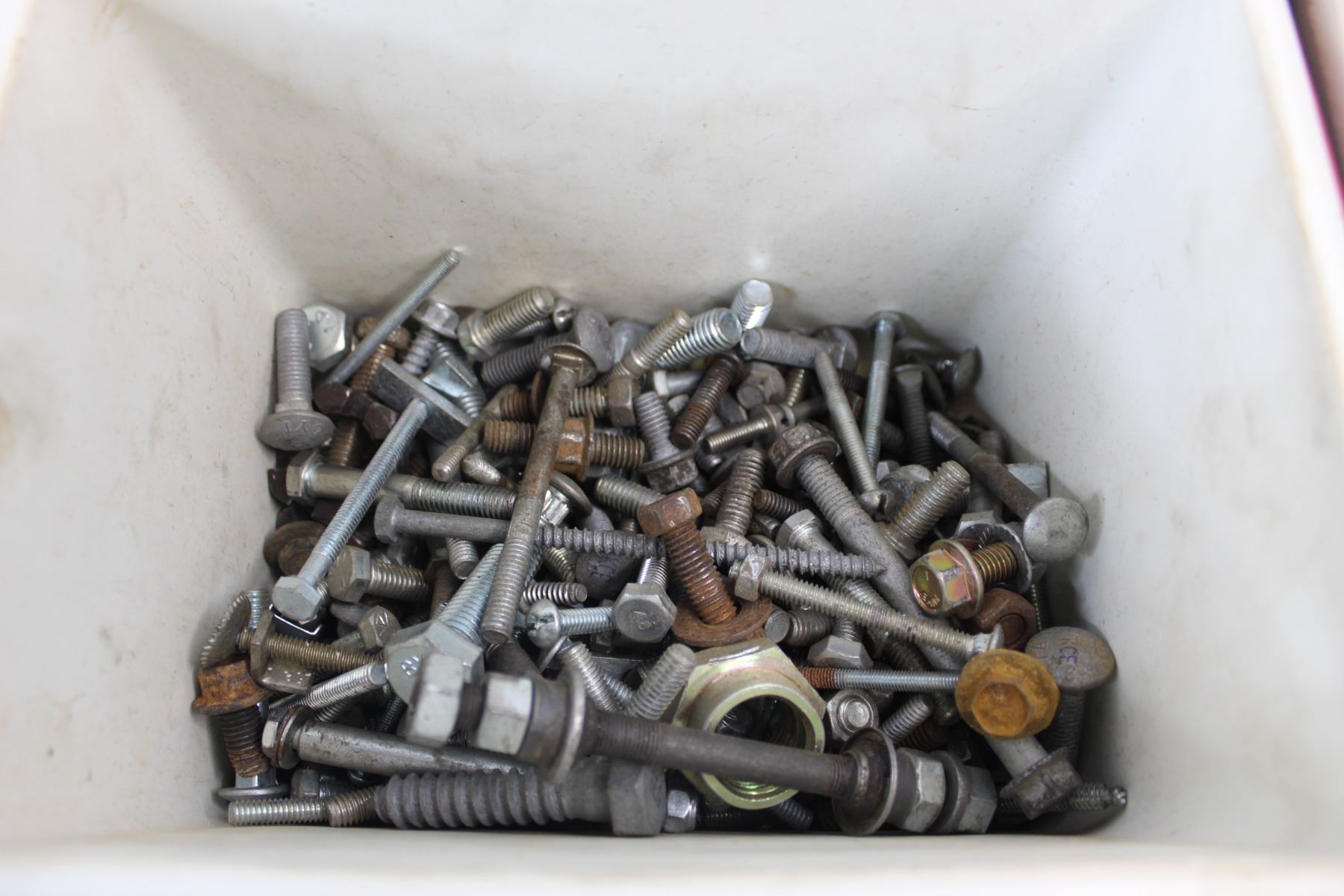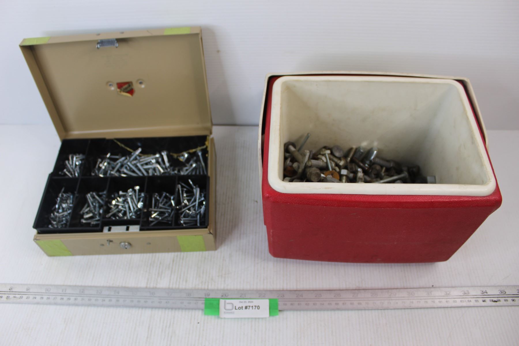 Lot Of Assorted Nuts/ bolts, Misc., Pizza Hut Igloo Cooler, Cash Box