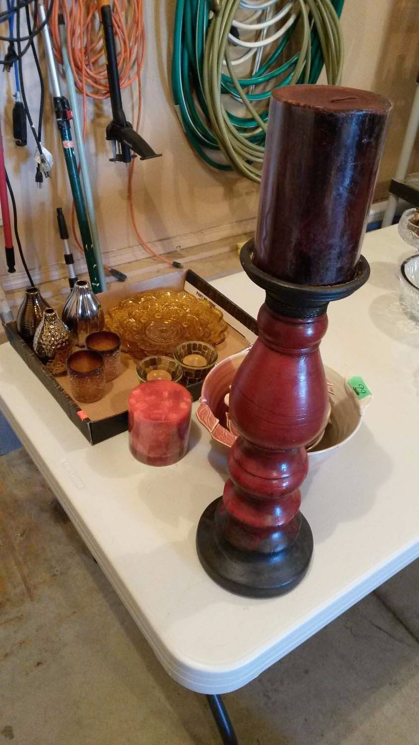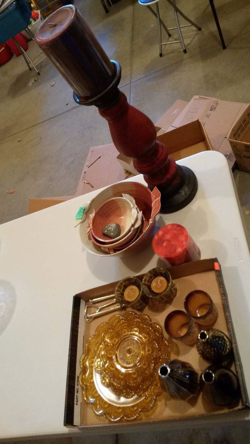 Lot Of Bowls, Glass Coloured Plates, Candles