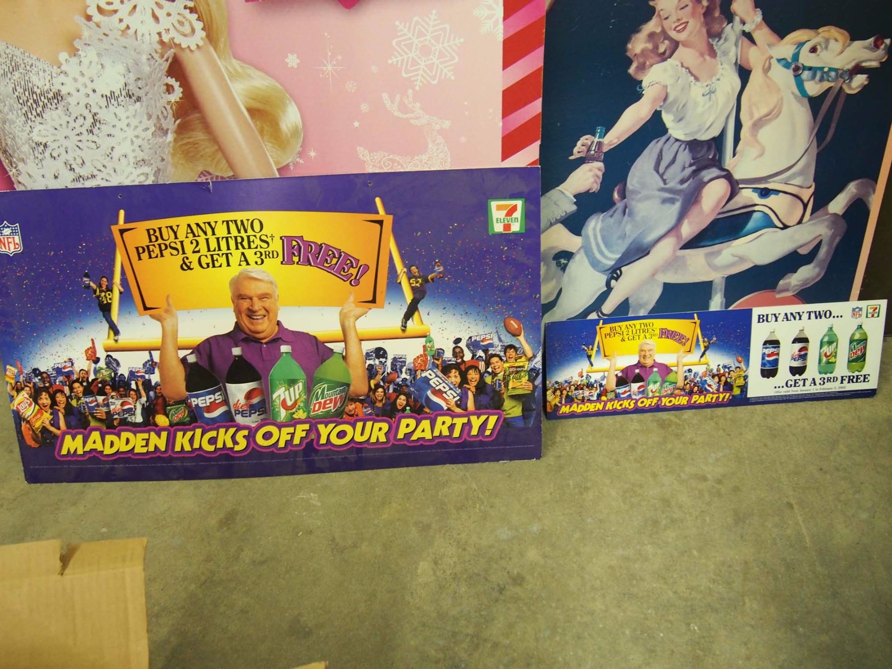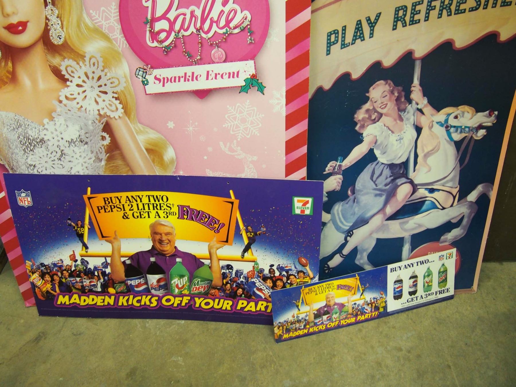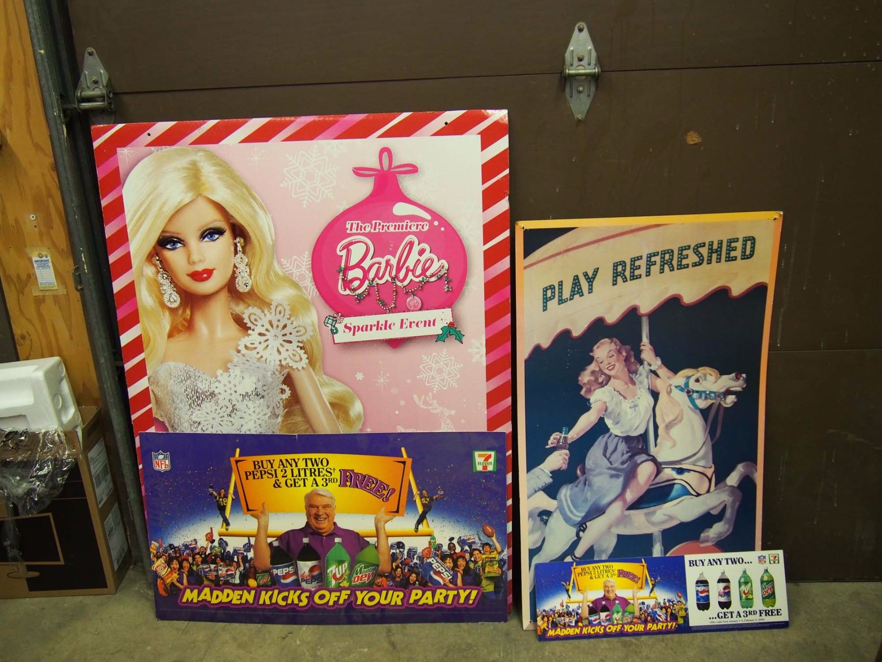 Lot Of Cardboard Advertising (4) (Barbie, Coca-Cola, Madden)