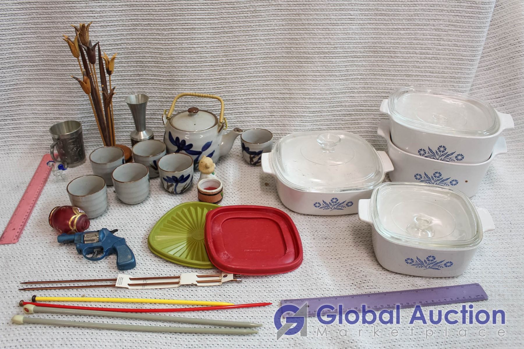 Lot Of Casserole Dishes, Tea Set And Other Kitchenware