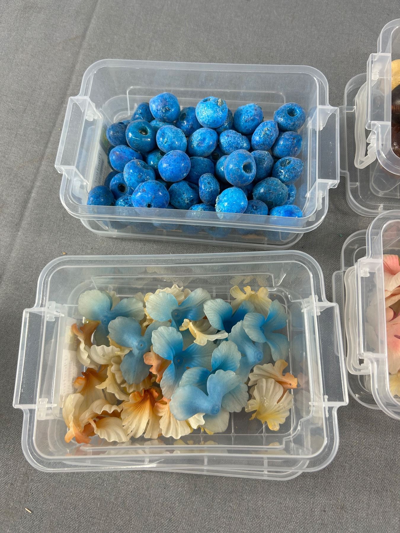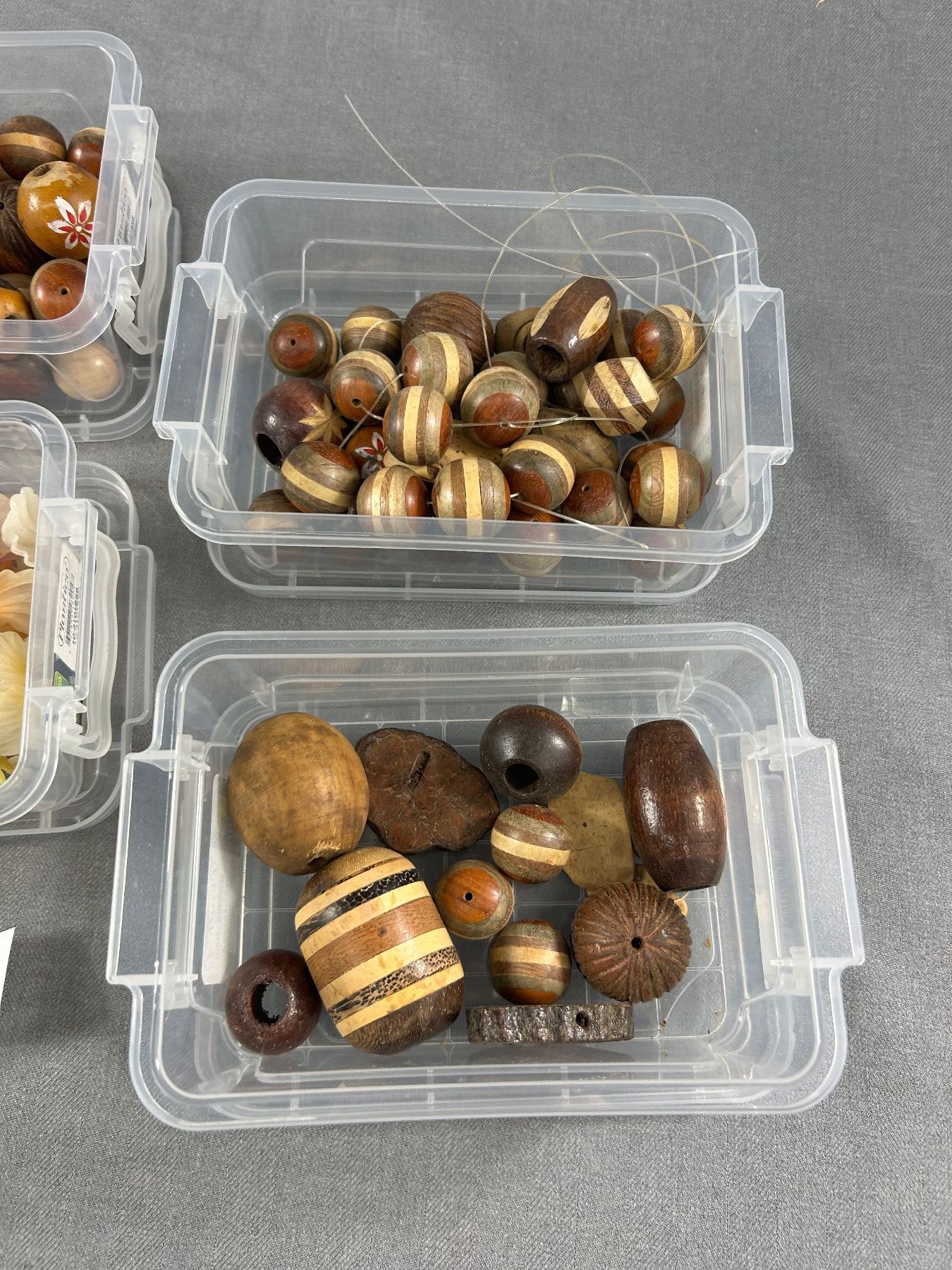 Lot Of Crafting Beads - Misc. Wood, Large Clay Beads & Glass Look Flower Petals