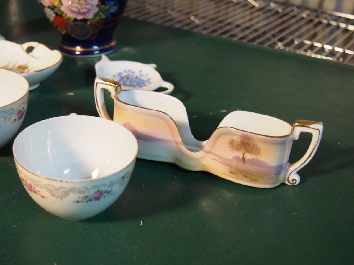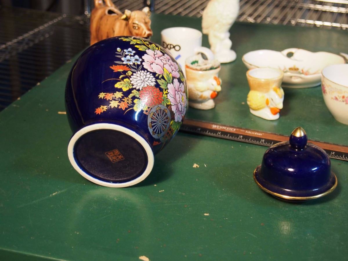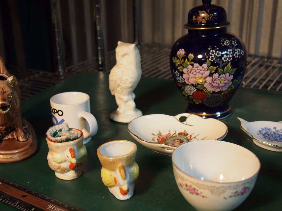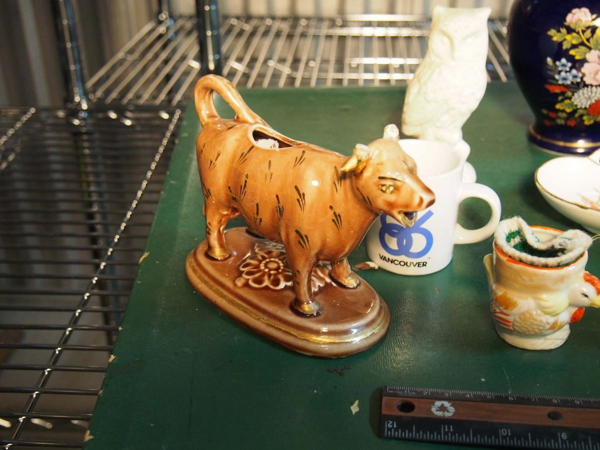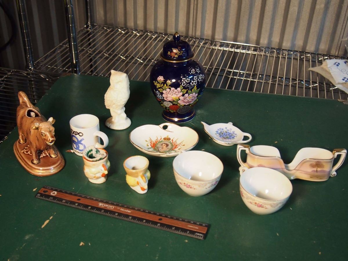 Lot Of Dishware, Japan Vase, Bull Statue, Etc
