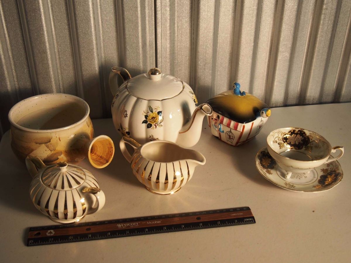 Lot Of Dishware (Kettle, Cream And Sugar, Tea Cup, Etc.)