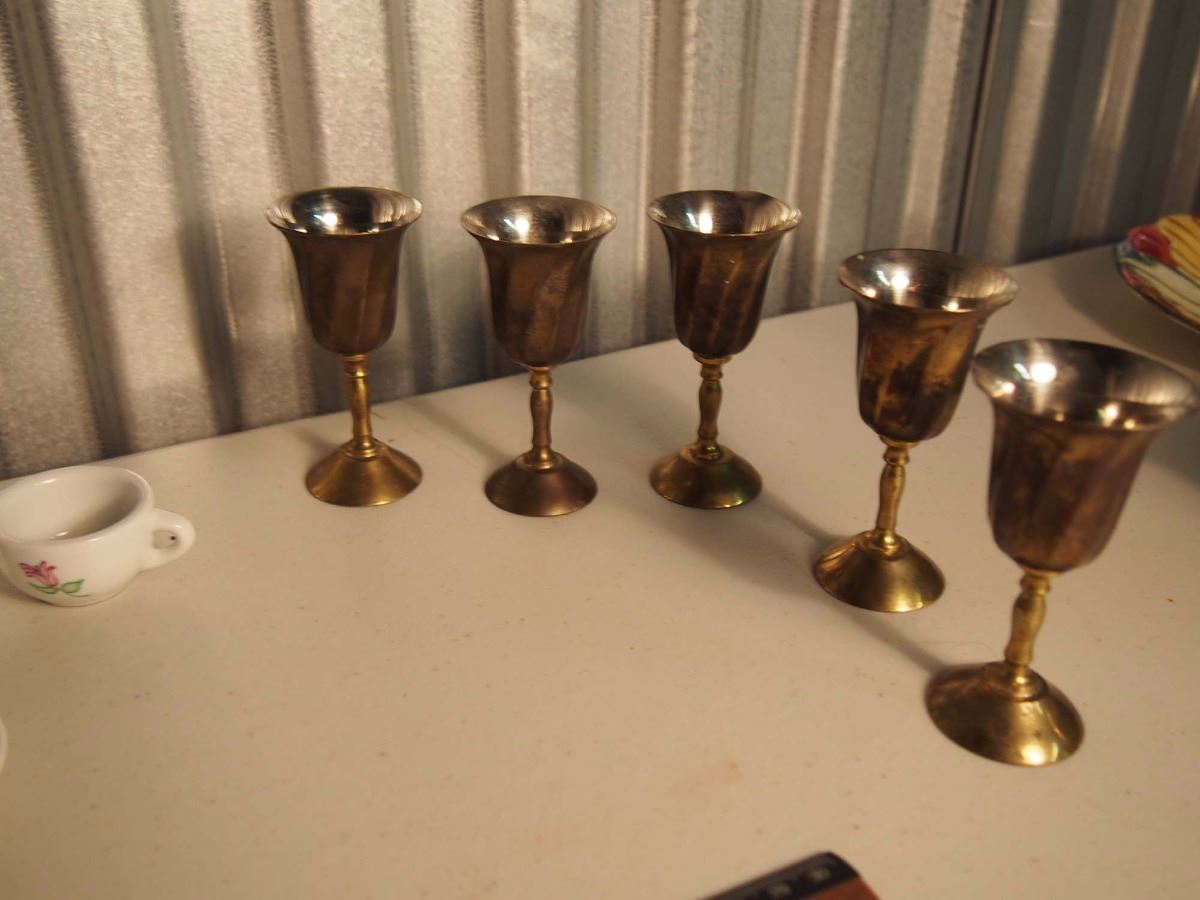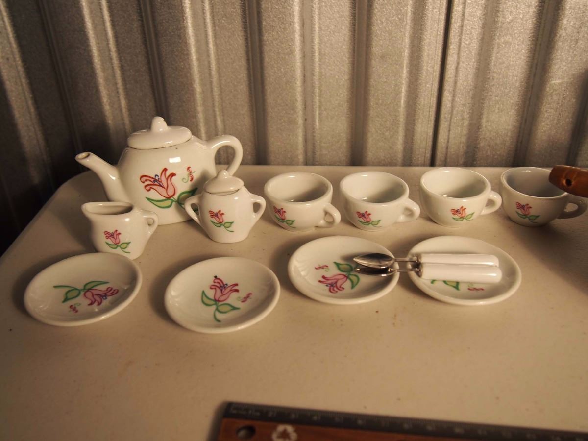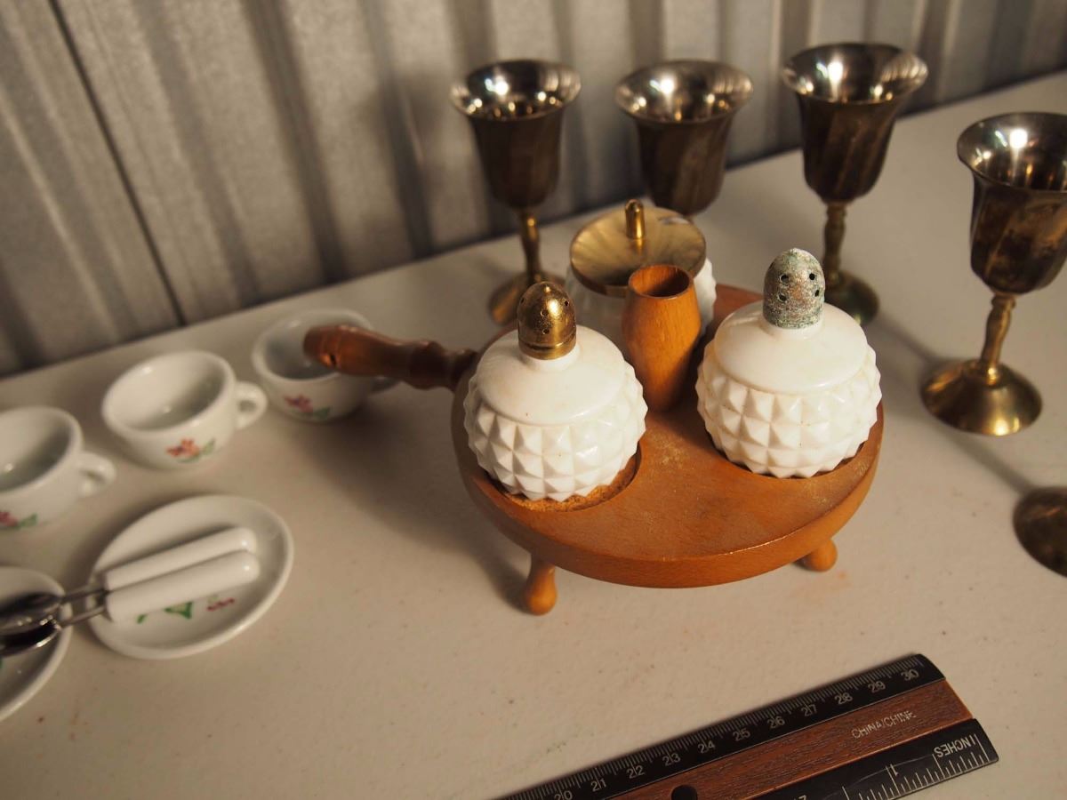 Lot Of Doll Dishware, Mini Goblets, Table Caddy