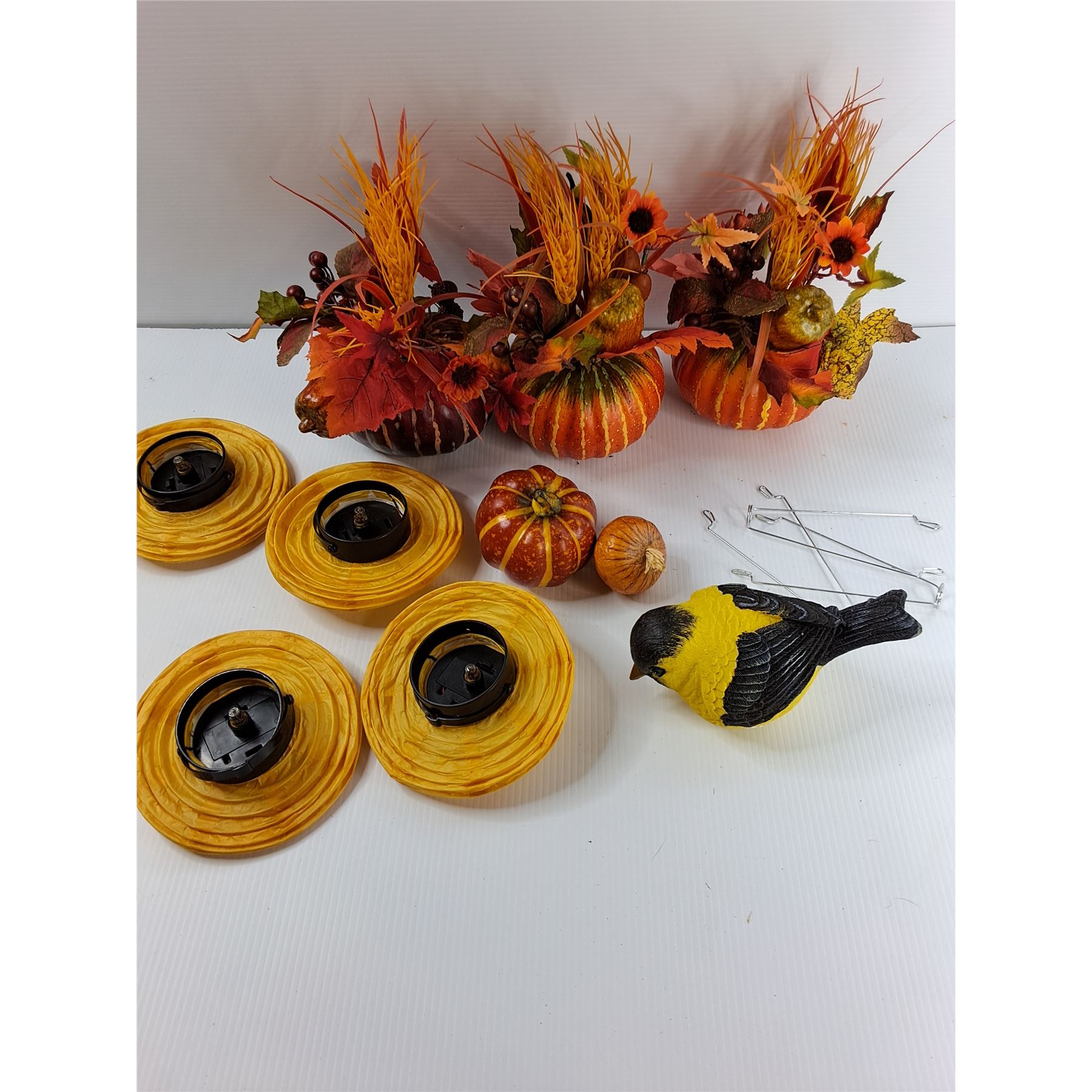 Lot Of Easter/ Fall Decor, Artificial Pumpkins, Bird, Misc