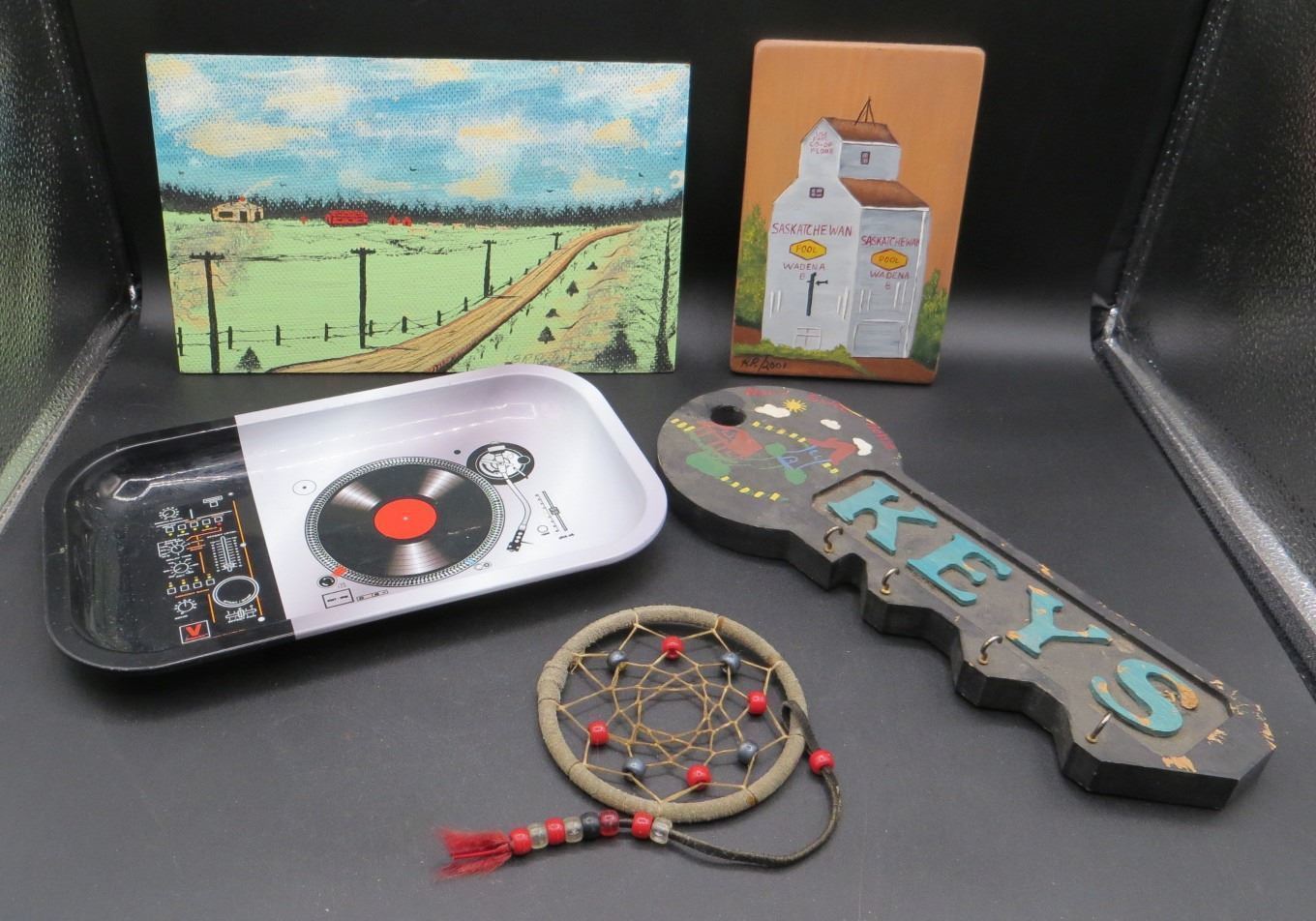 Lot Of Estate Items Key Rack, Rolling Tray Dream Catcher & Pictures