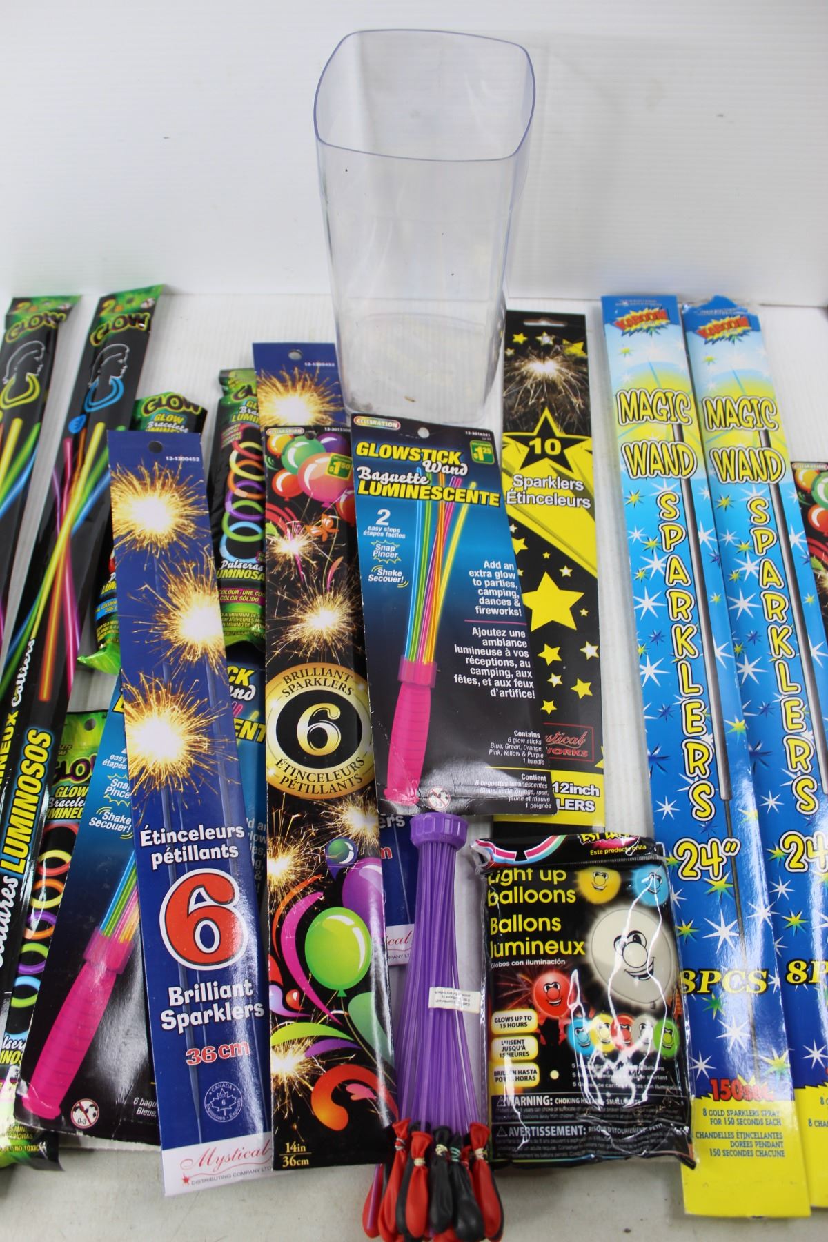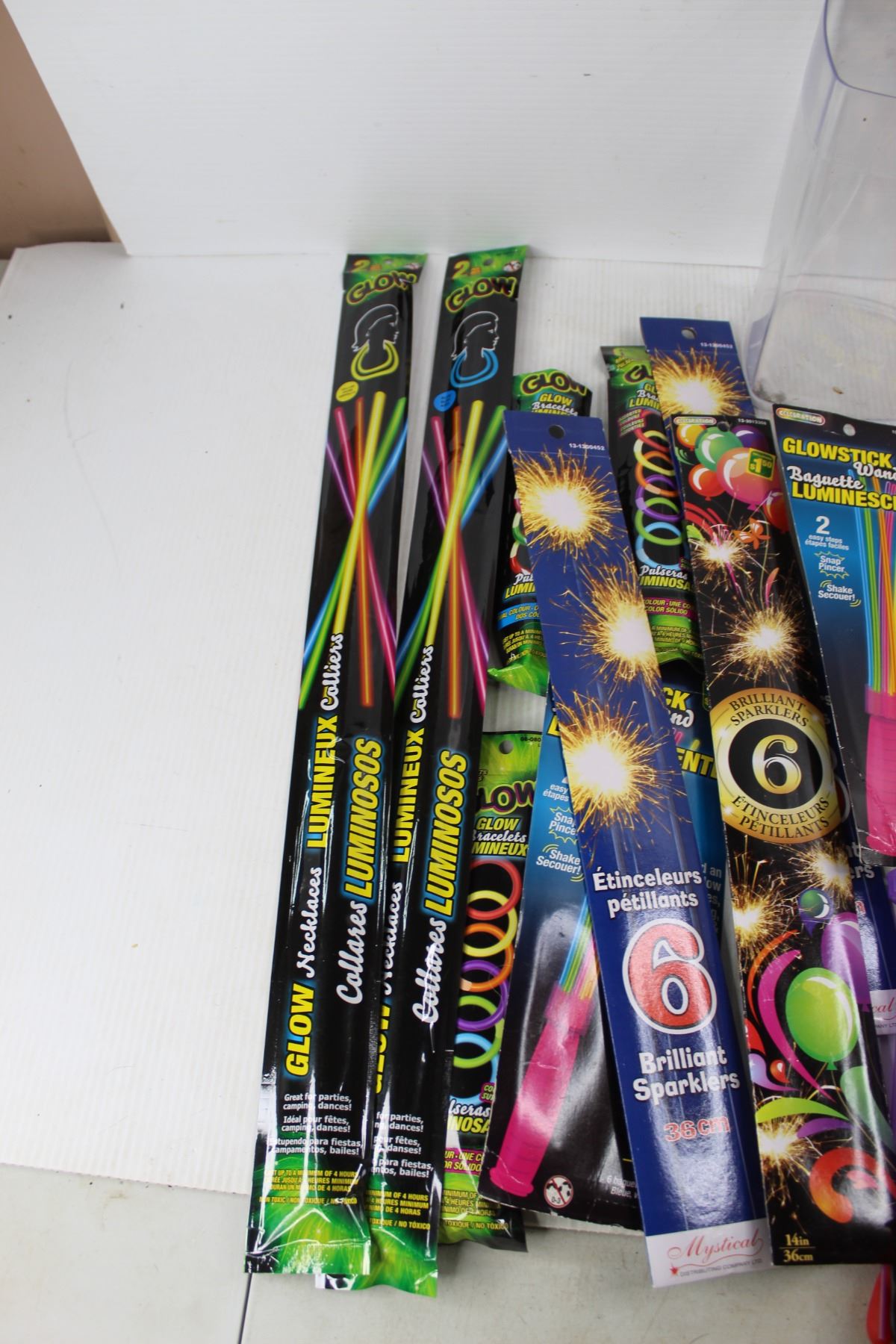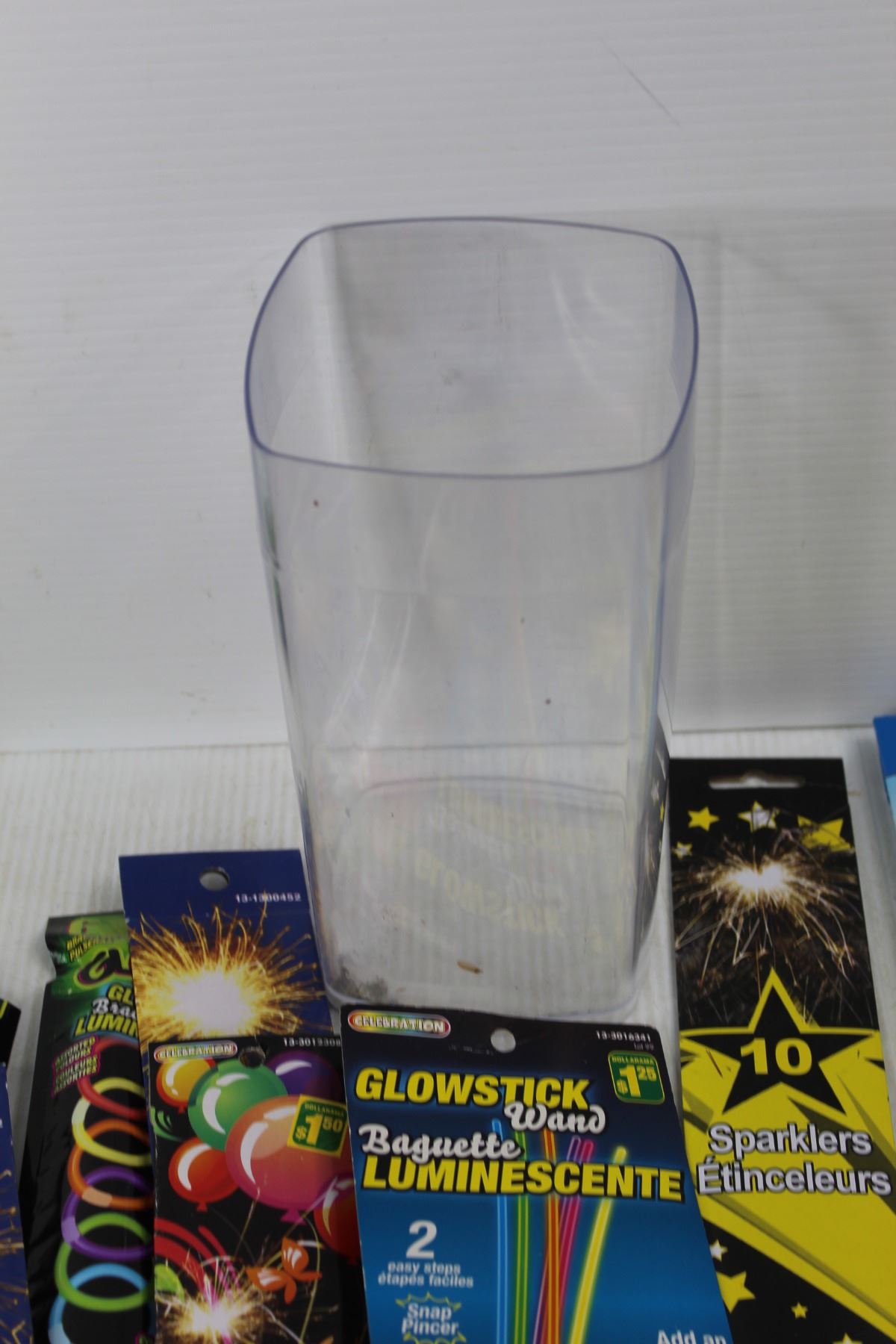 Lot Of Glowsticks, Sparklers, Plastic Container 9'' Tall- All NIB