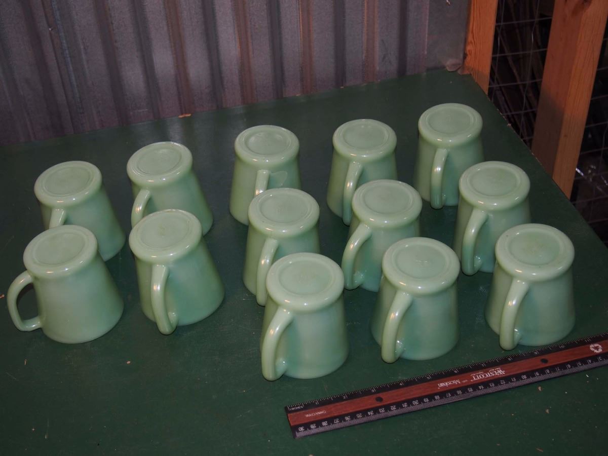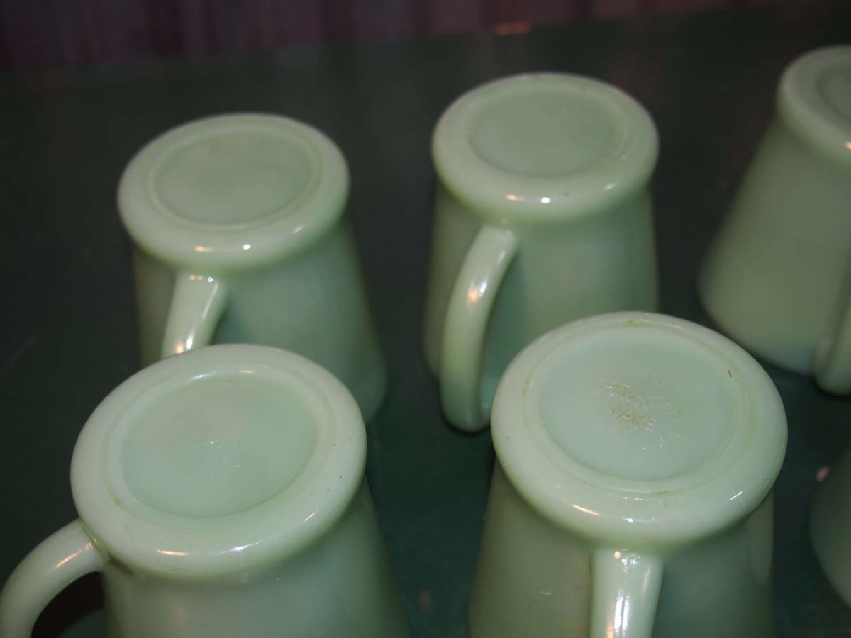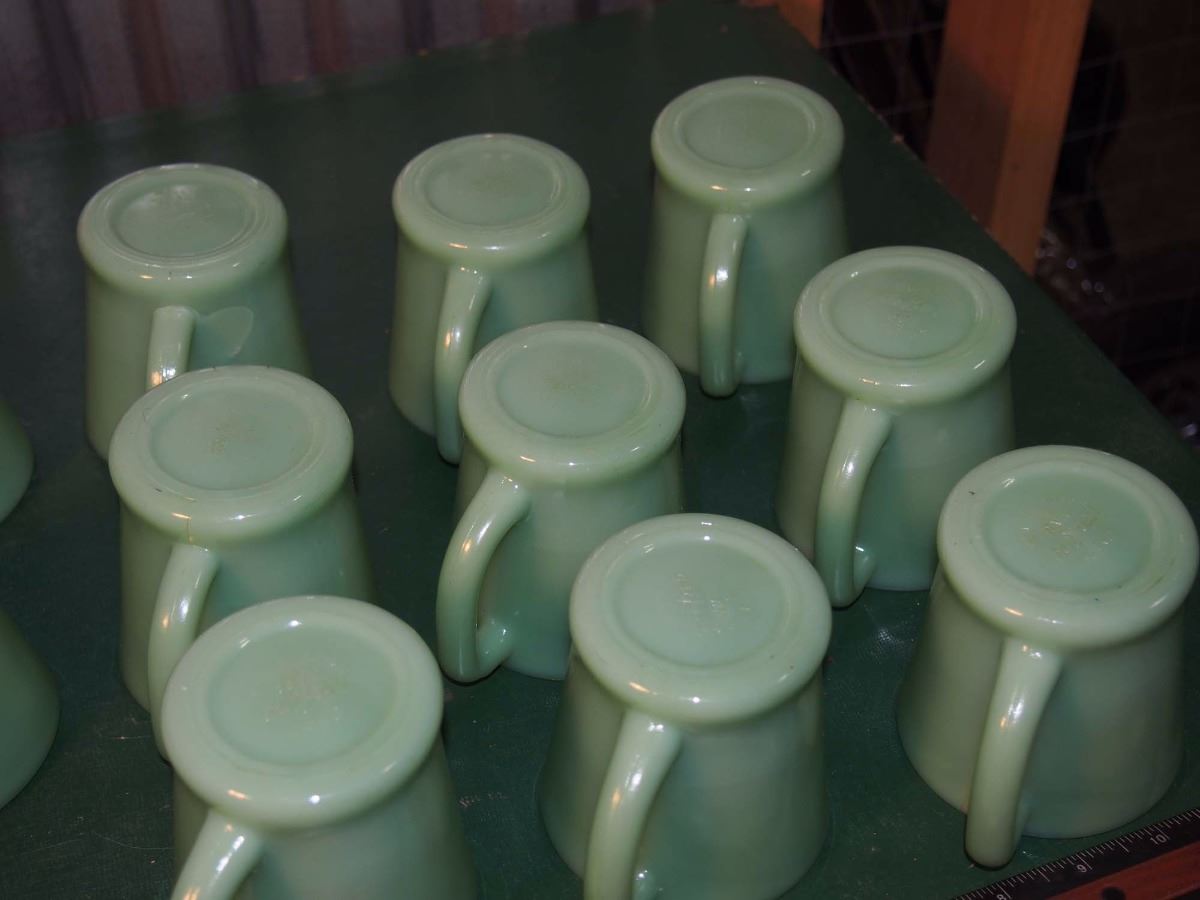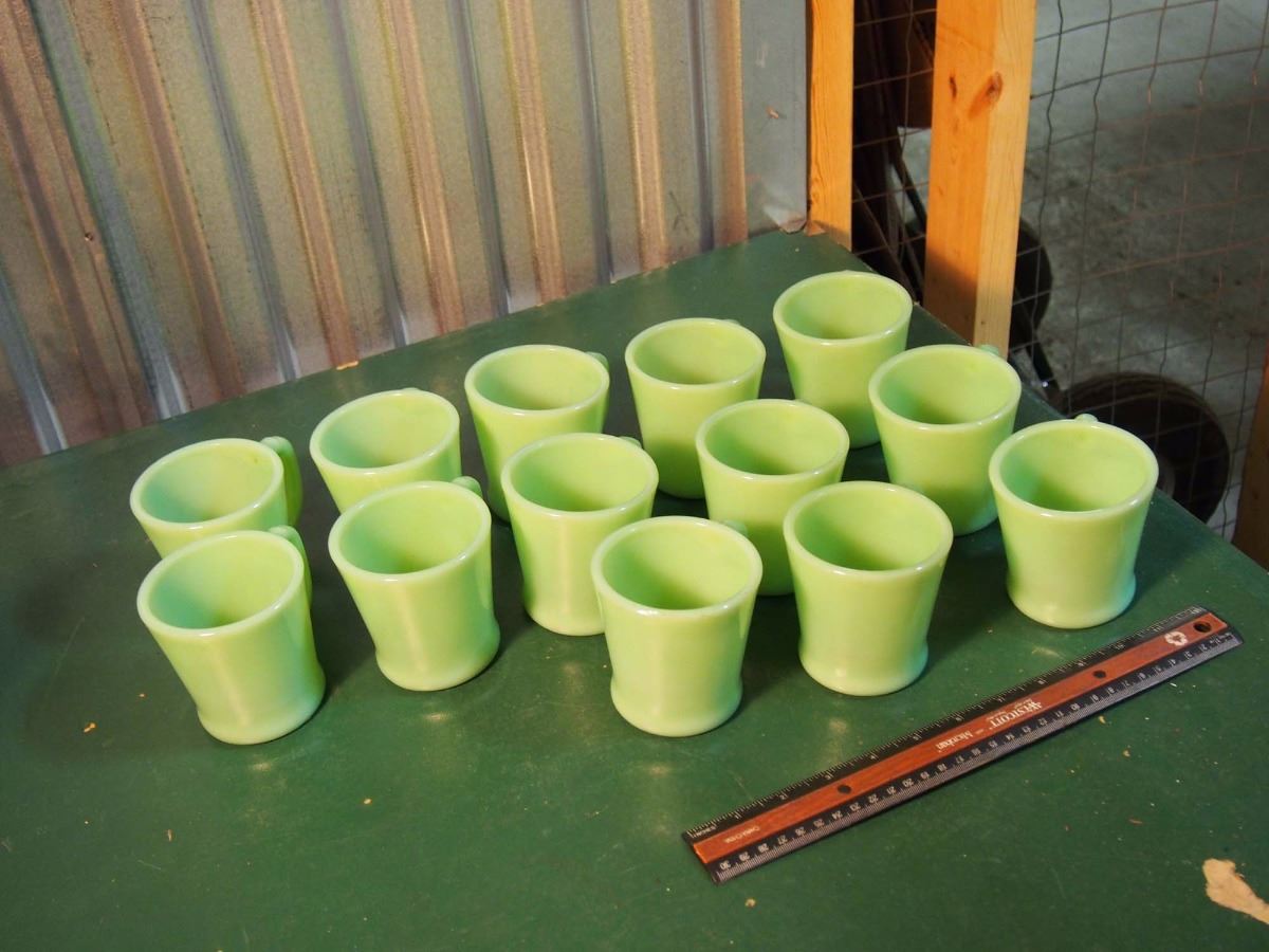 Lot Of Green Glass Fire King Coffee Cups