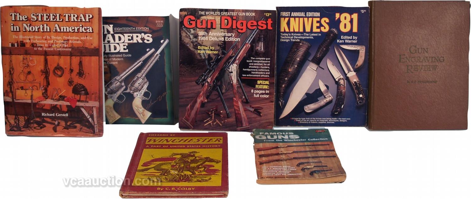 Lot Of Gun & Knife Collector & Informational Books Including: Gun Engraving Review, Gun Digest, Knives '81, Steel Trap In North America, etc.