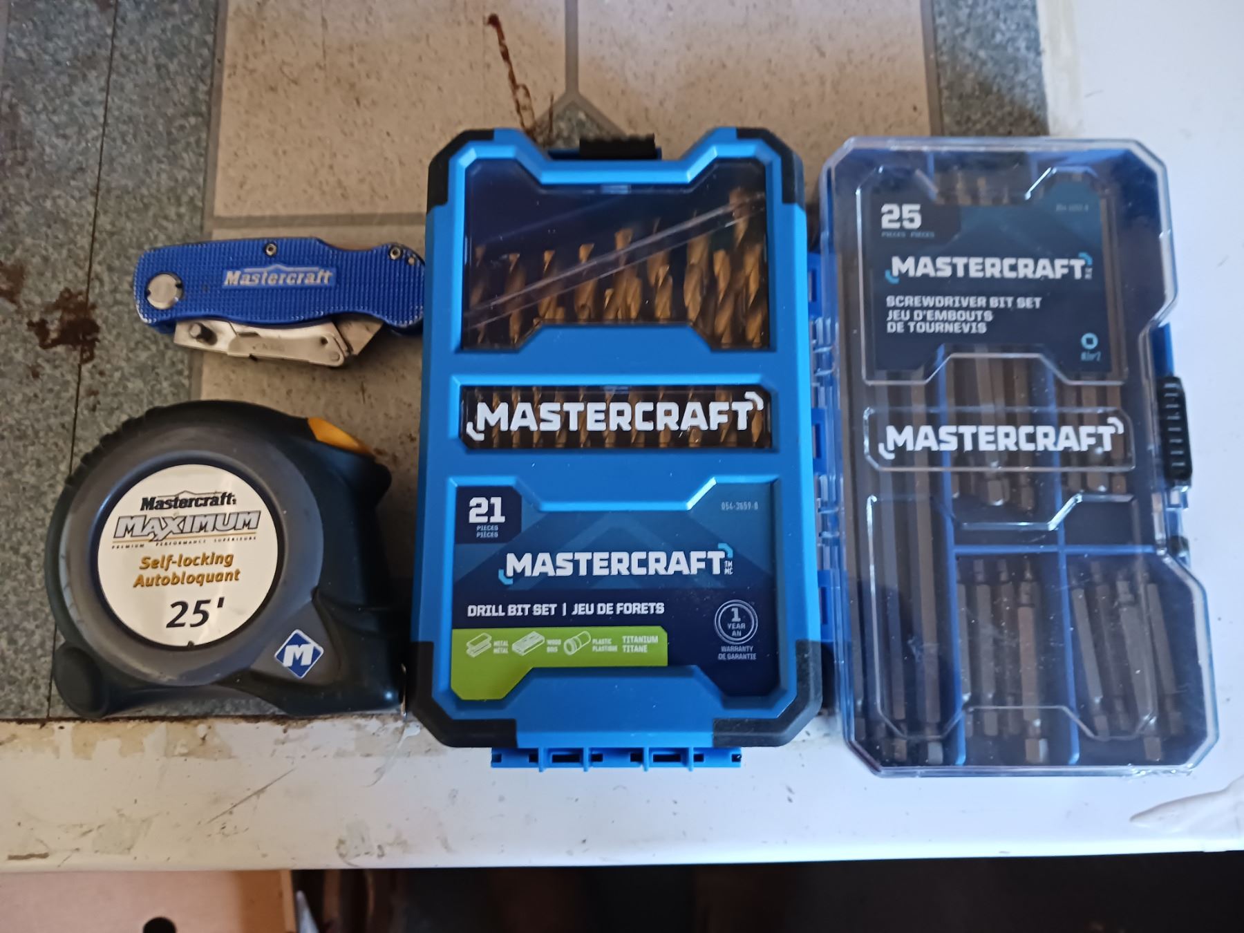 Lot Of Mastercraft Items, Razor, Self-locking Tape, Drill Bit Set & Screwdriver Bit Set
