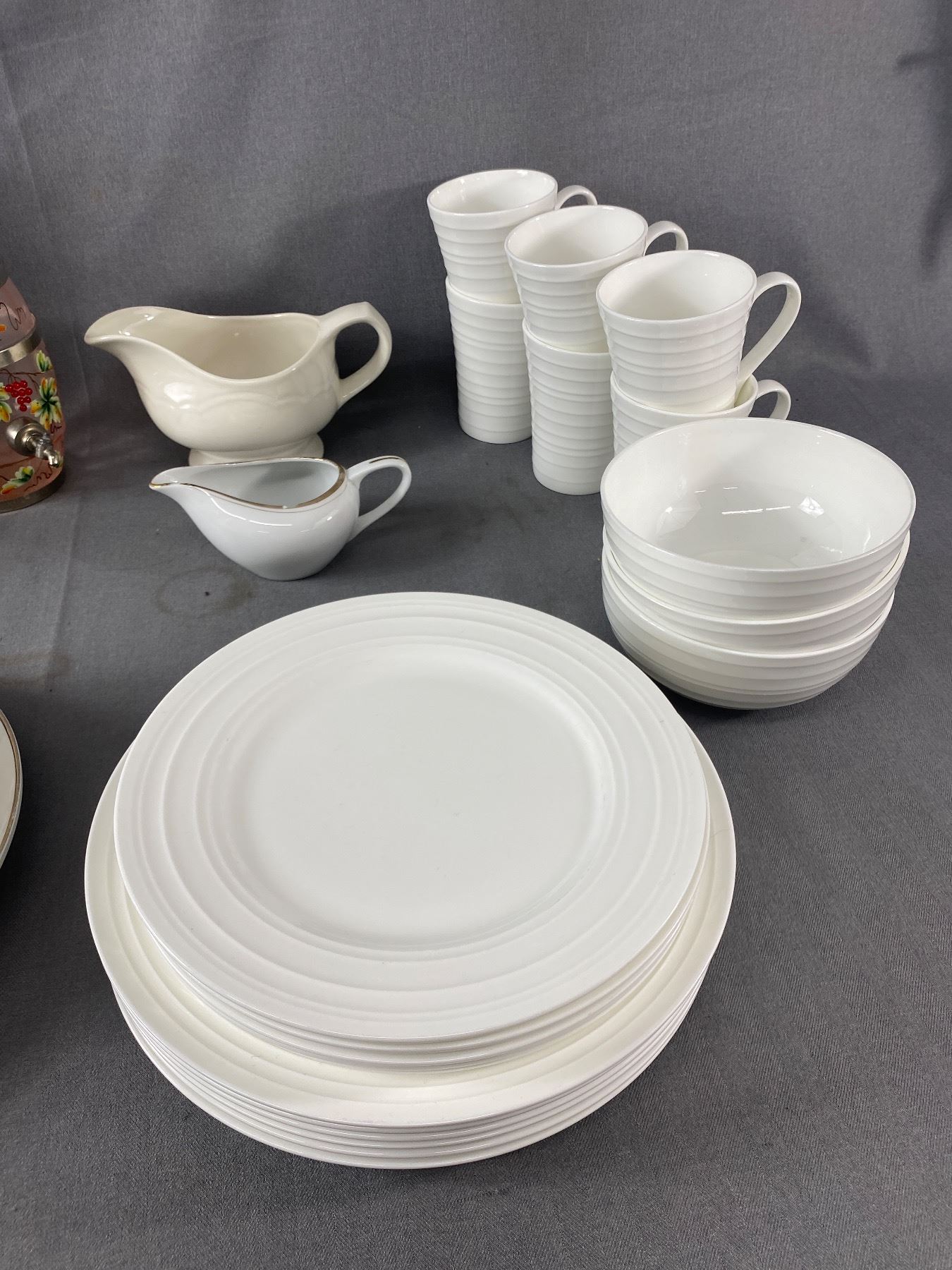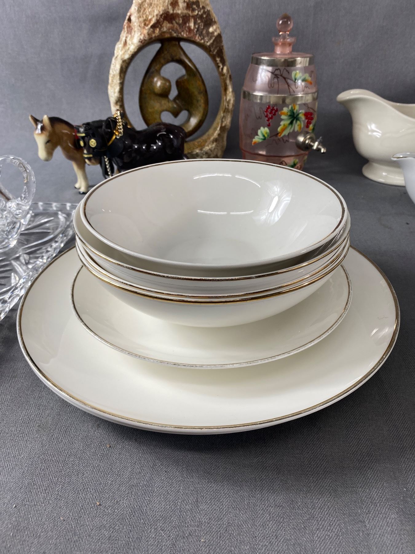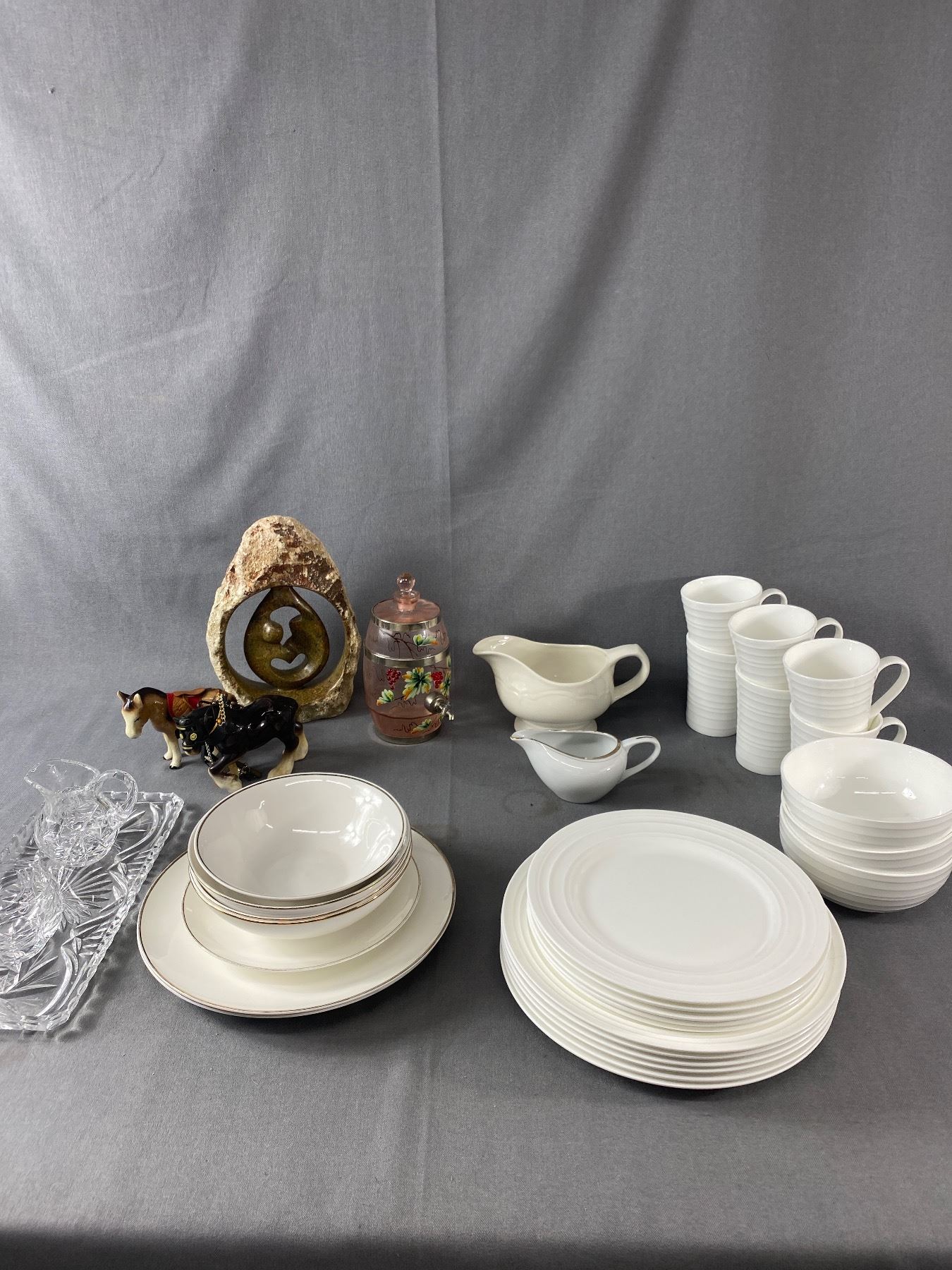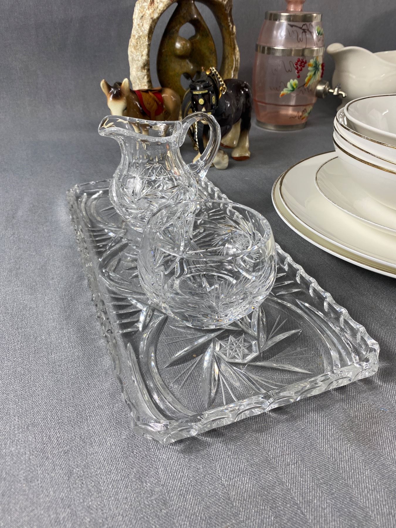 Lot Of Mikasa "Ciara" Dishes, Crystal Cream/Sugar Set, & More