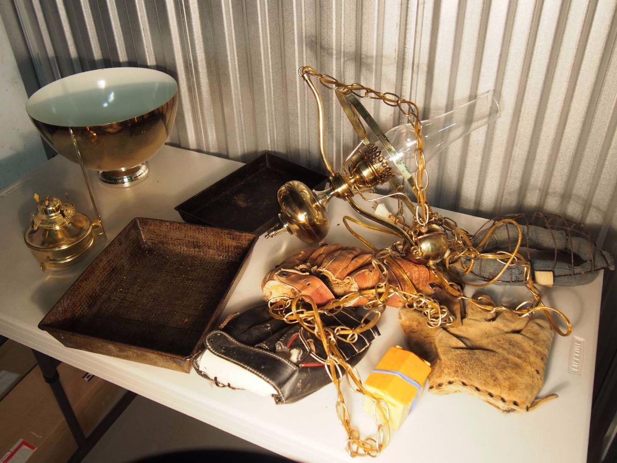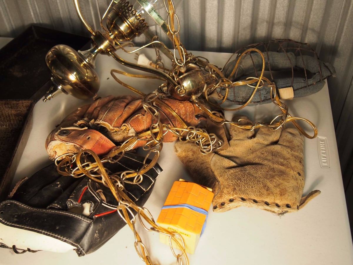 Lot Of Misc. (Hanging Lamp, Catcher Mitts, Etc.)