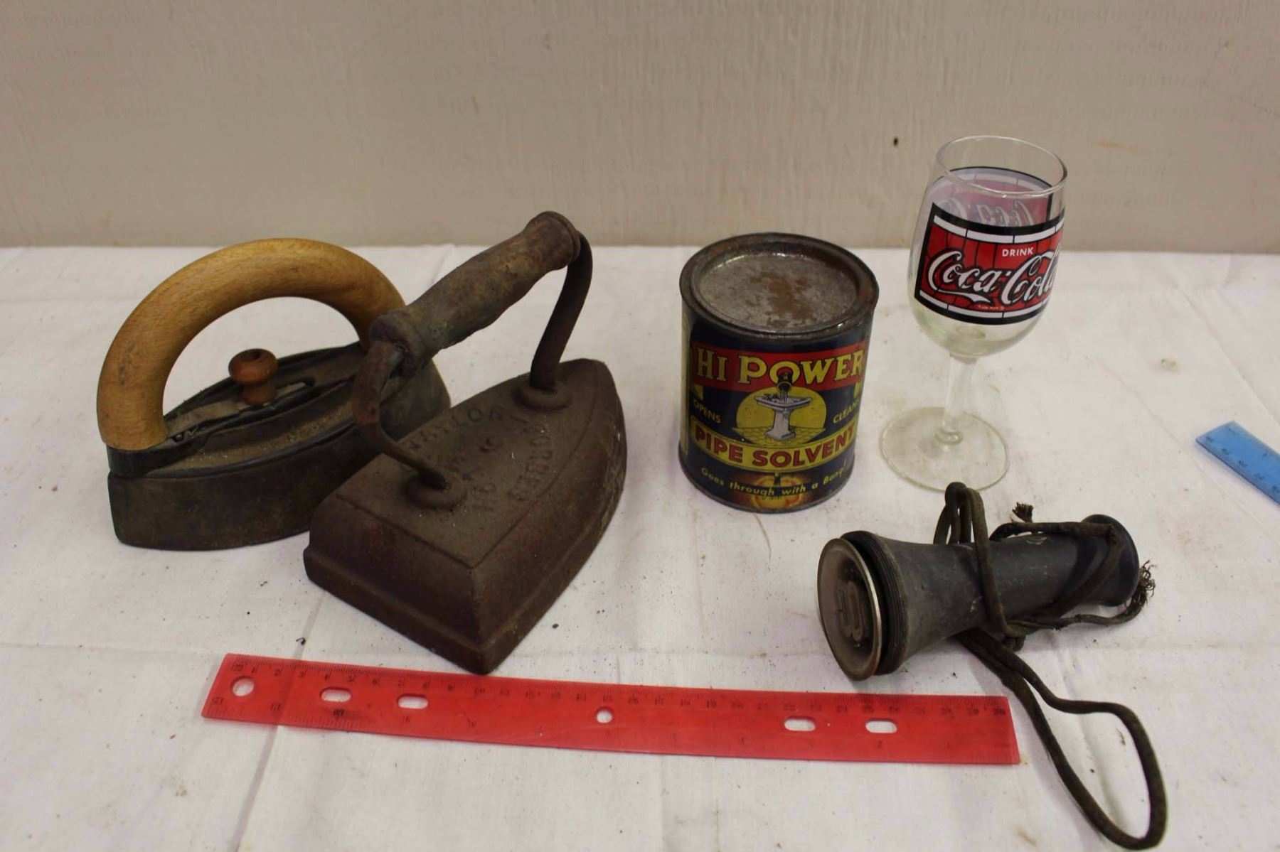 Lot Of Misc. (Irons, Pipe Solvent, Coke Glass Etc)