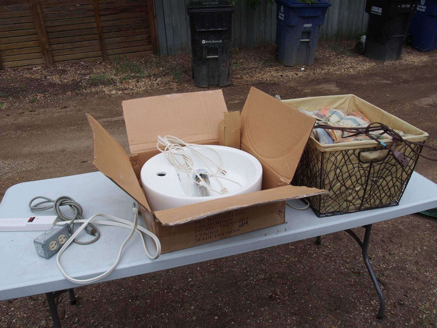 Lot Of Misc. (Kitchen Sink, Electric Cords, Hamper, Linens)