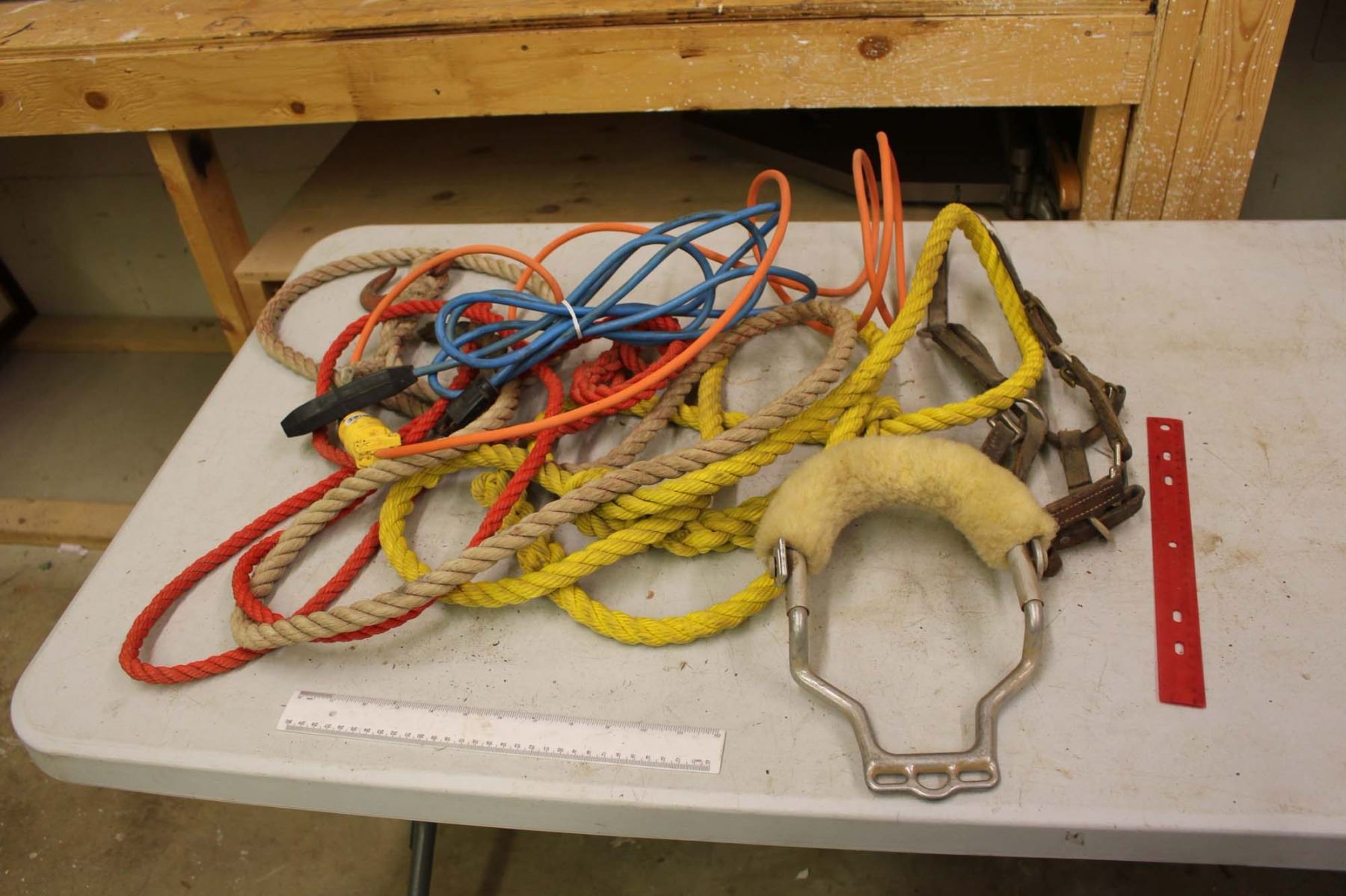 Lot Of Misc. Leather Halter, Rope Halters, Extension Cords