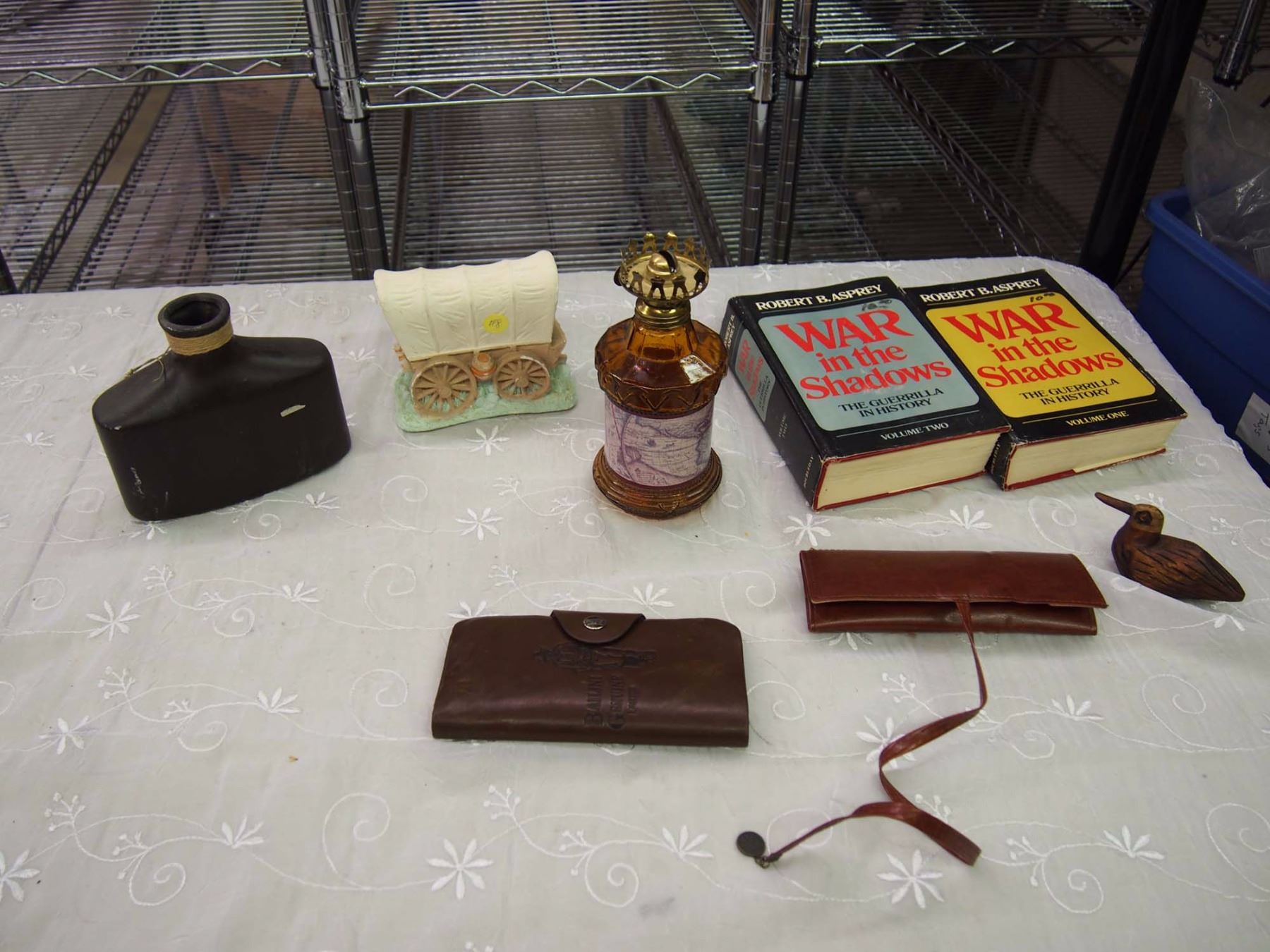 Lot Of Misc. (Oil Lamp, Books, Wallets, Etc)