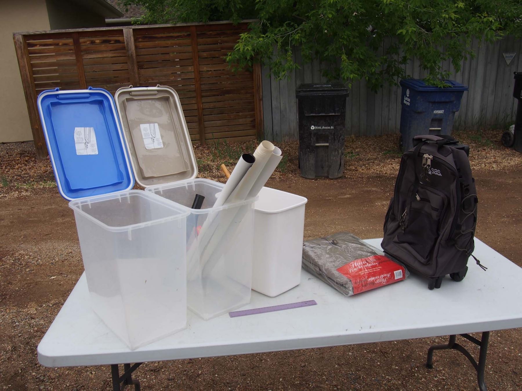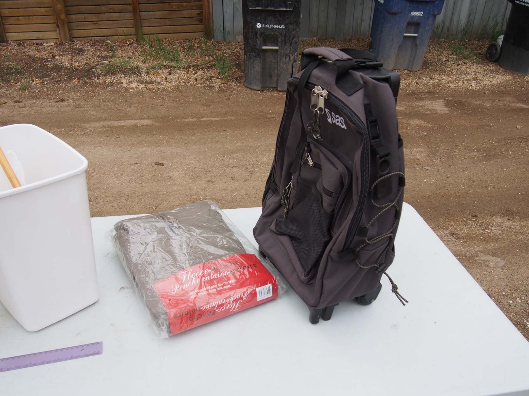 Lot Of Misc. (Plastic Containers, Posters, Incense, Backpack with rollers)