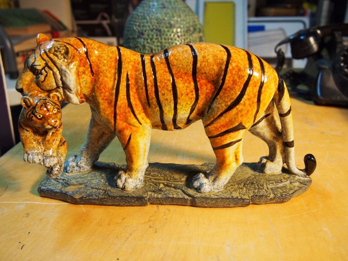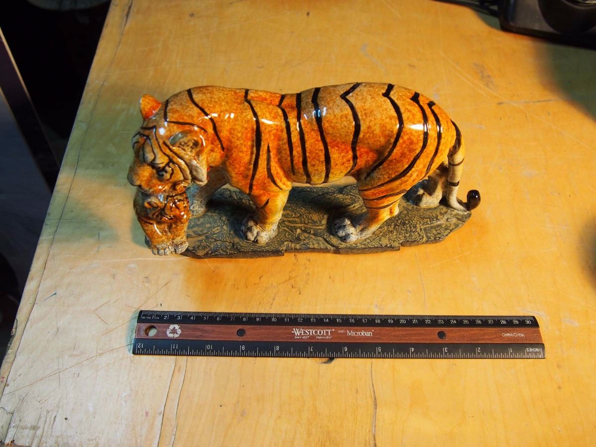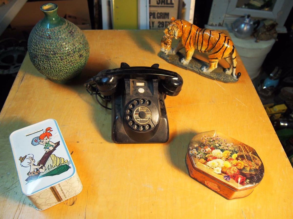 Lot Of Misc. (Tiger Statue, Vase, Rileys Toffee Tin, Flinstones Coin Bank, PTT Rotary Phone)