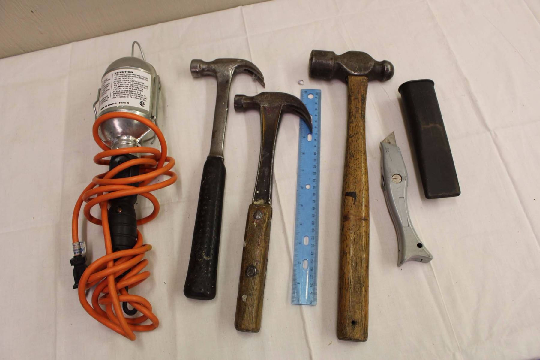 Lot Of Misc. Tools (Hammers, Safety Light, Etc)