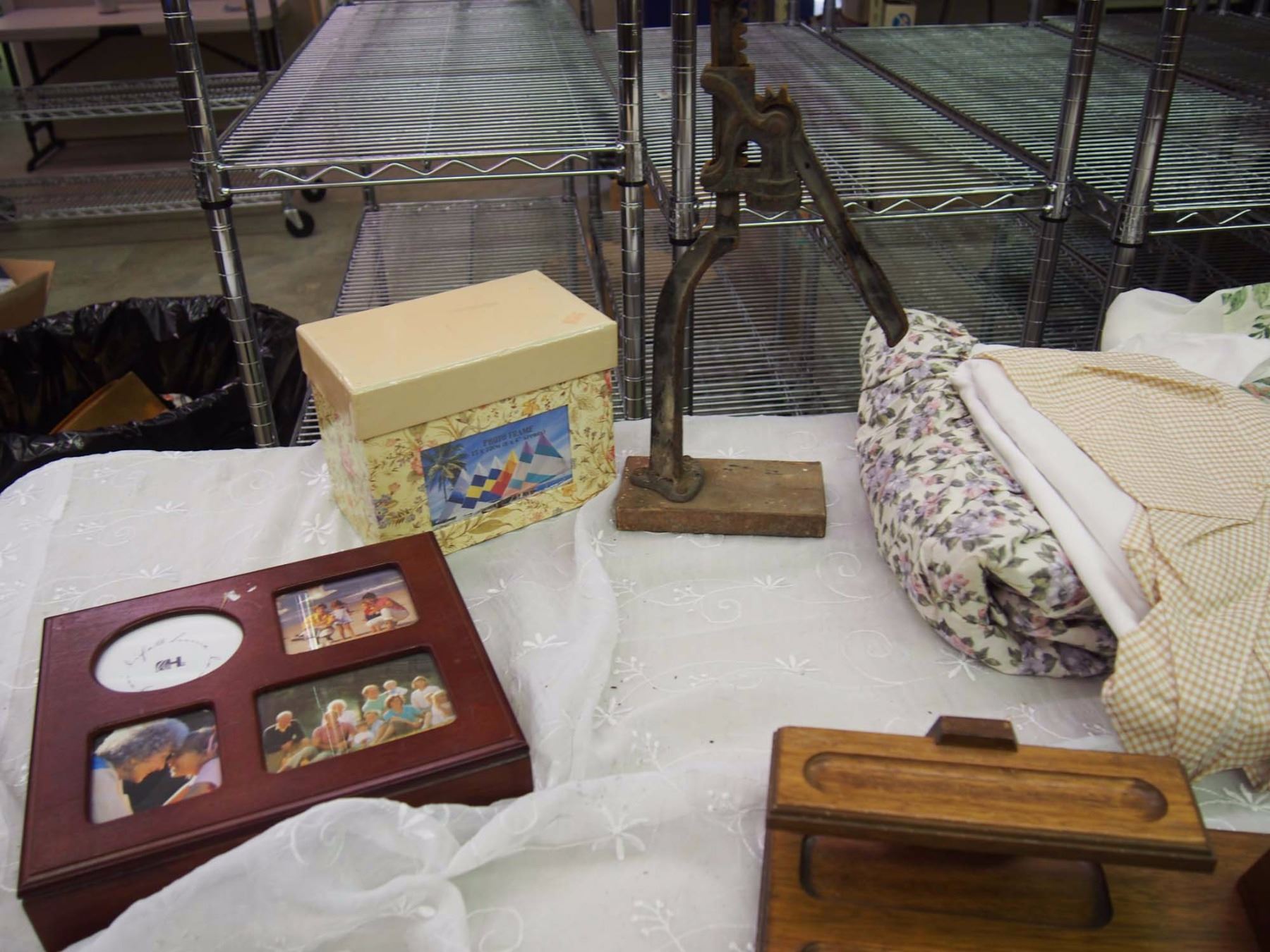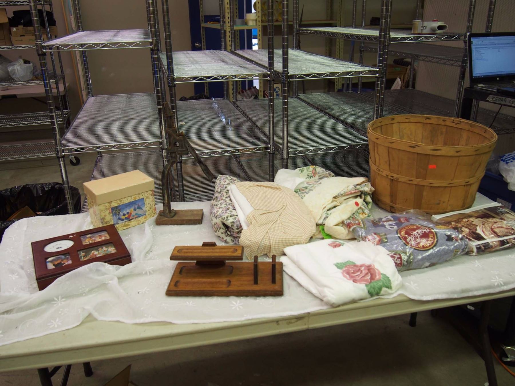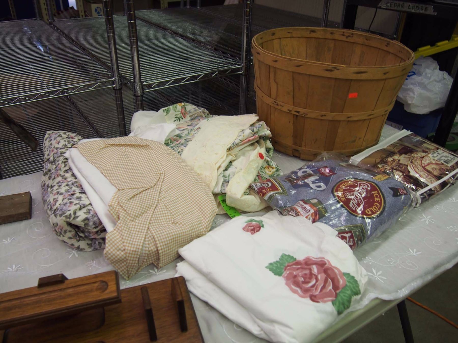 Lot Of Misc. (Wood Basket, Misc. Bedding, Bottlecapper, Etc)