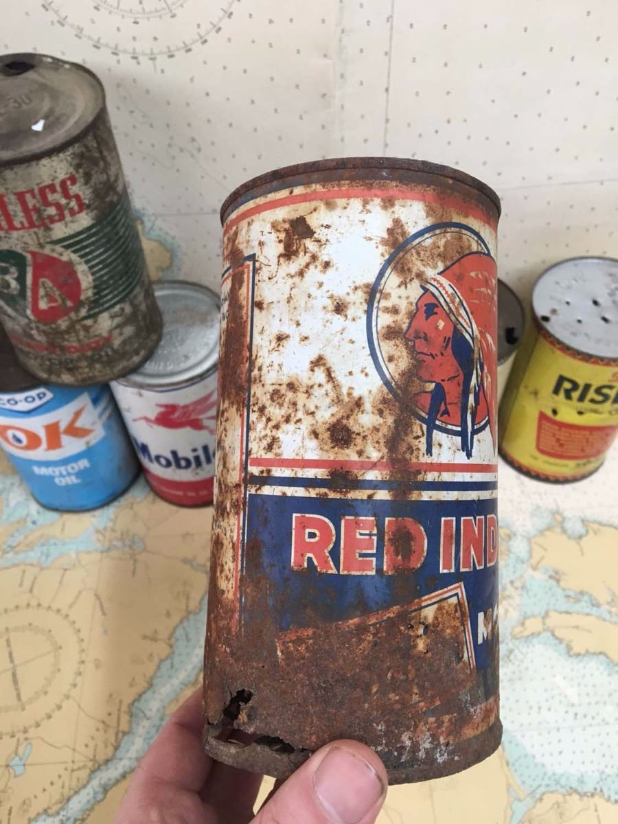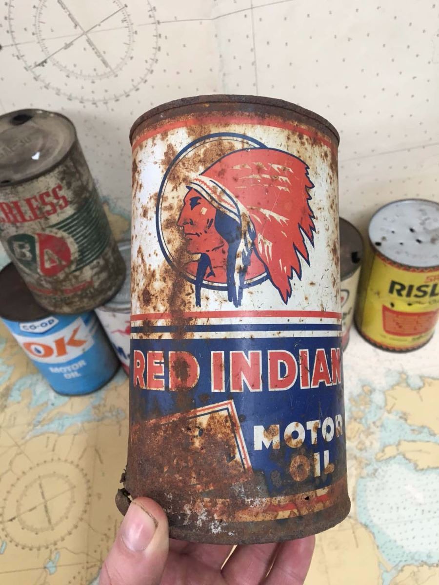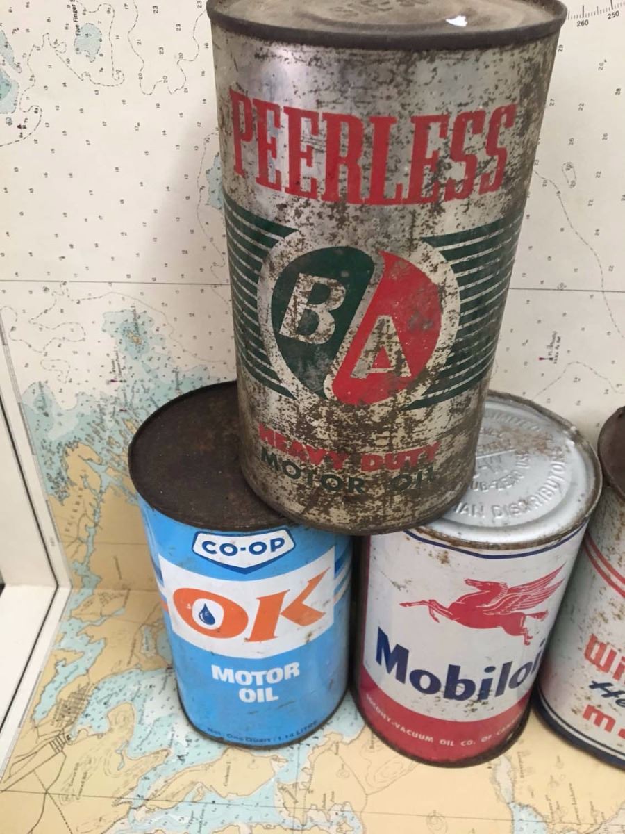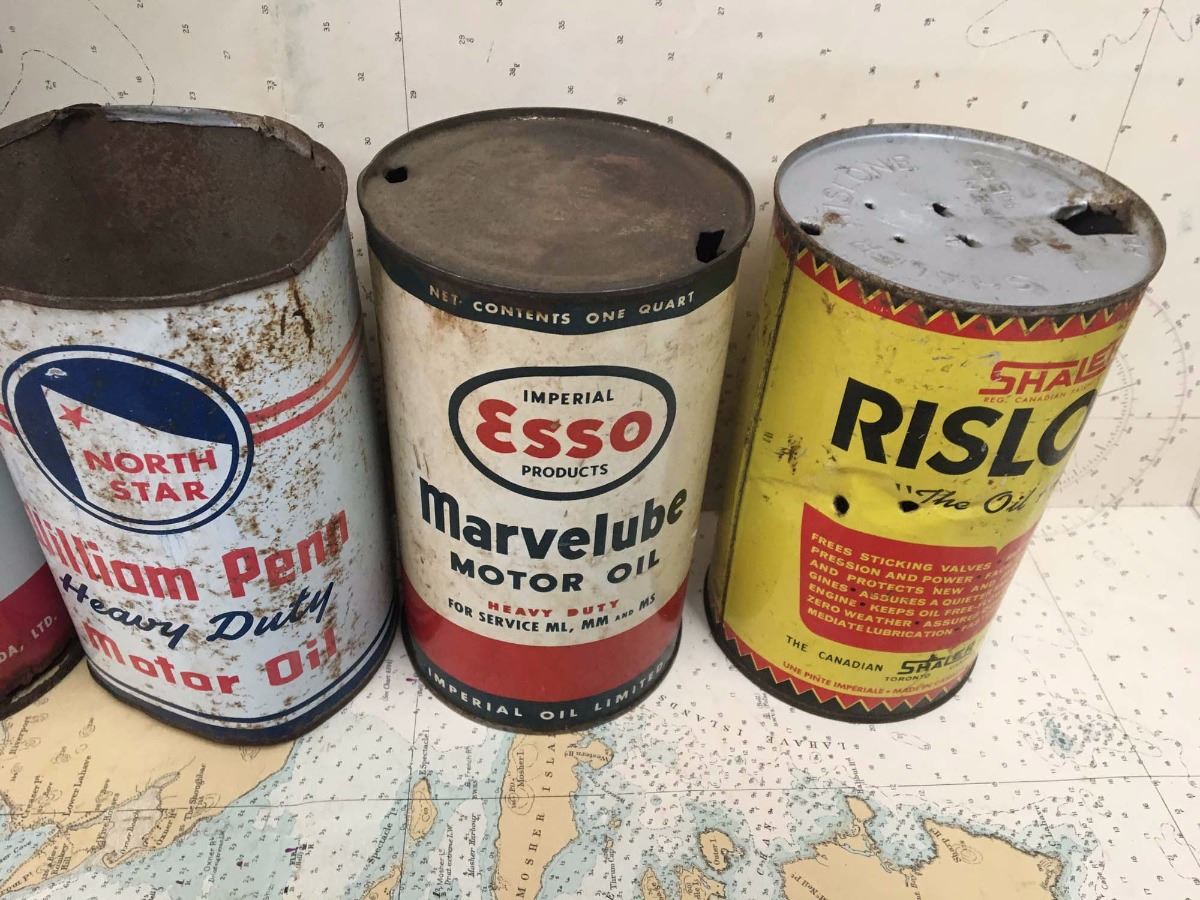 Lot Of Quart Oil Cans (7) (Red Indian, North Star, B/A Mobiloil)
