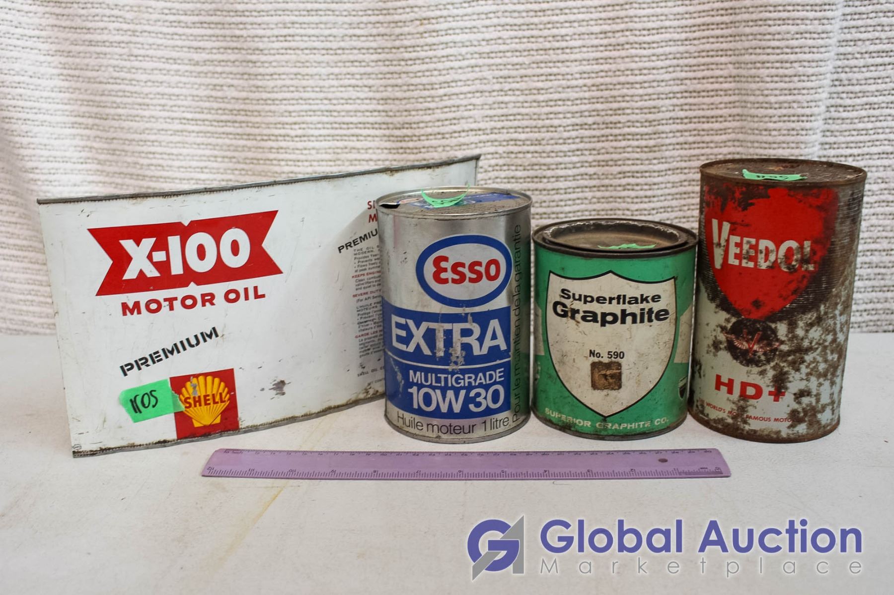 Lot Of Quarts: Veedol, Esso Extra, Superflake Graphite, Shell X-100