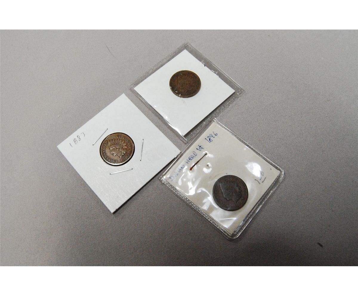 Lot Of Three Indian Head Pennies, 1883, 1896, 1903