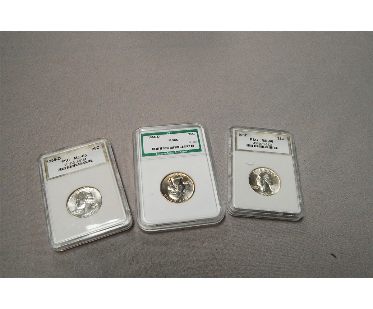 Lot Of Three Quarters, 1955D MS65, 1955D MS66, 1957 MS66