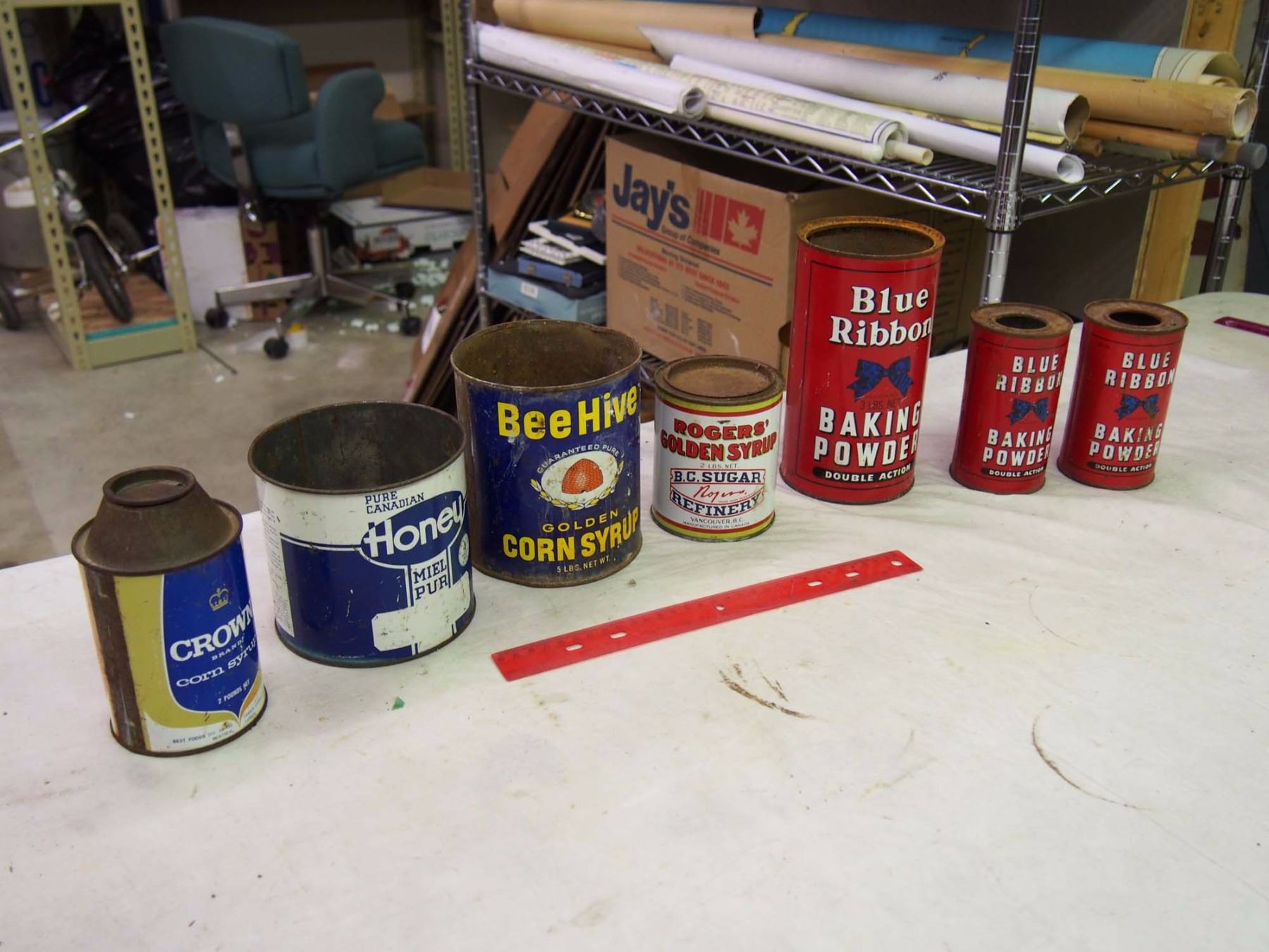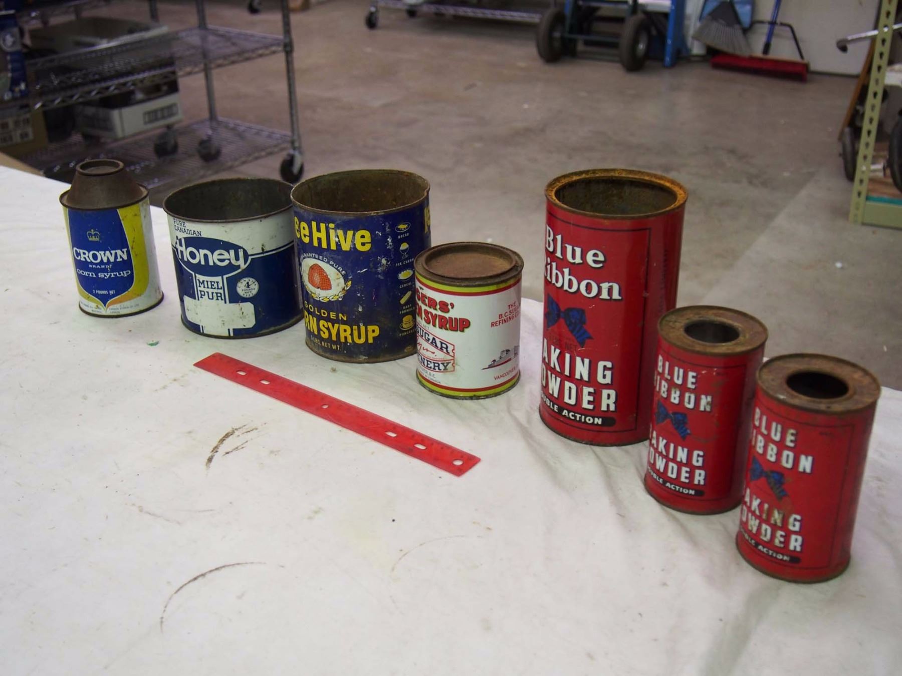 Lot Of Tins (Honey, Syrup, Baking Powder)