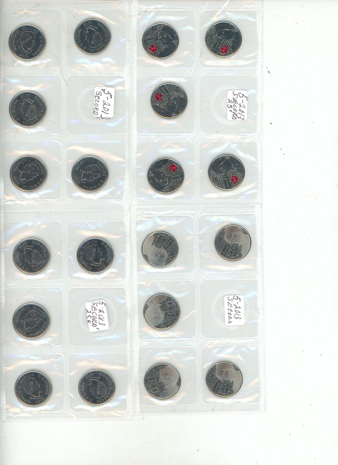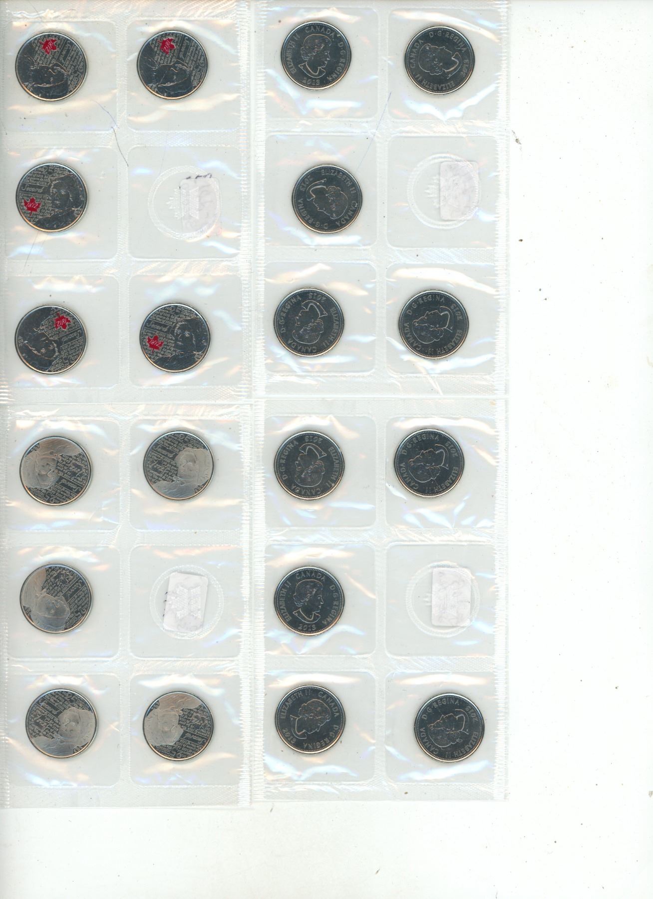 Lot Of Twenty (20) 2013 25c Secord Coins, 10 With Coloured Maple Leaves, Red