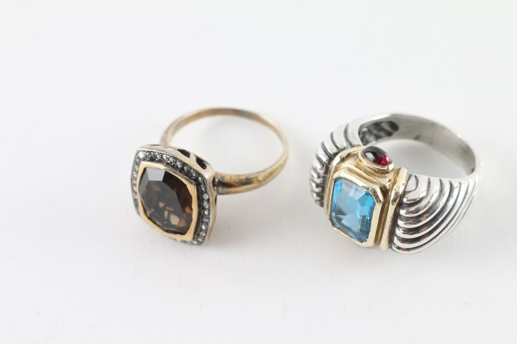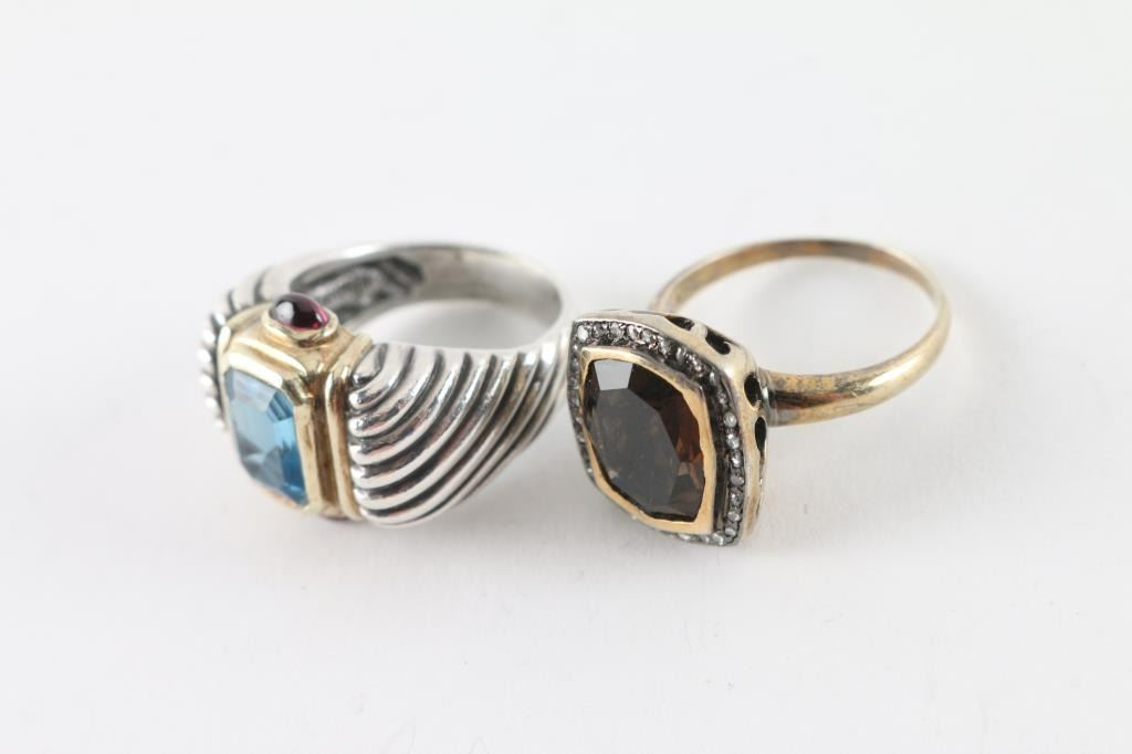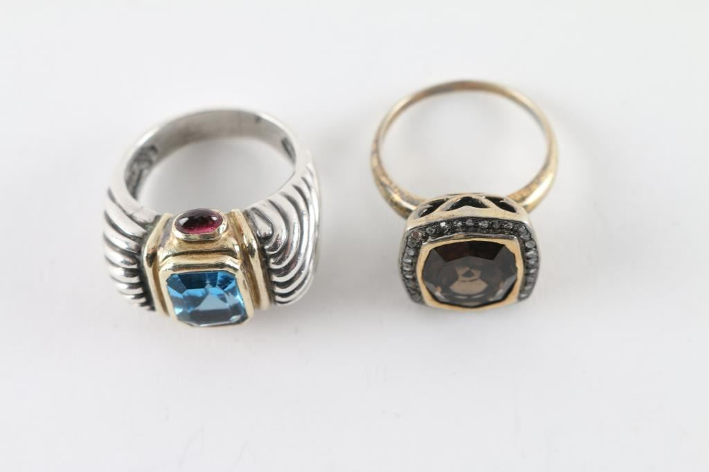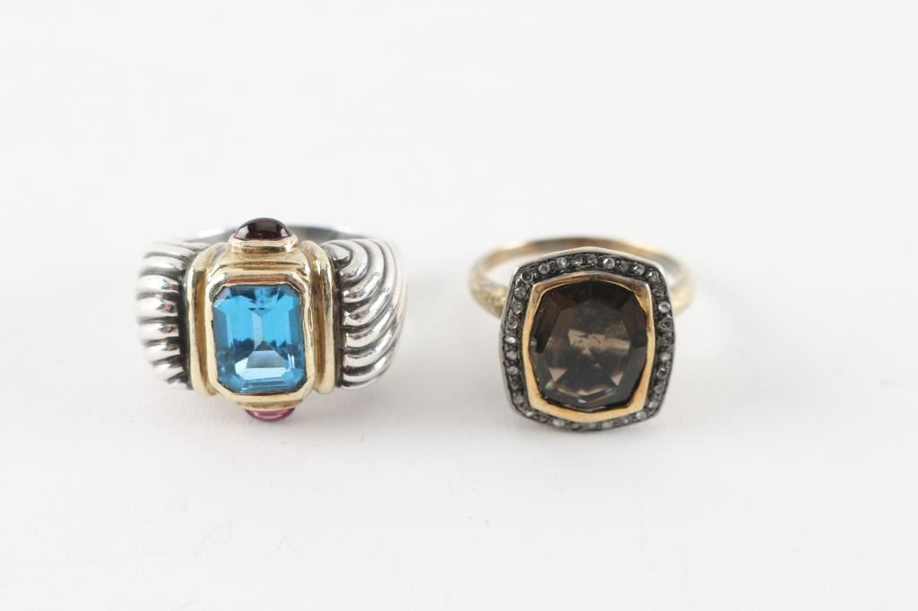 (1) David Yurman Topaz ring set in sterling silver with gold accents. Marked Size 9 (1) Smoky Topaz Ring set in 925