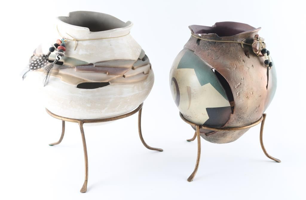 Signed by "Steven Caye" at the bottom of bases, both include pedestals, measuring 12x9" & 7x8"