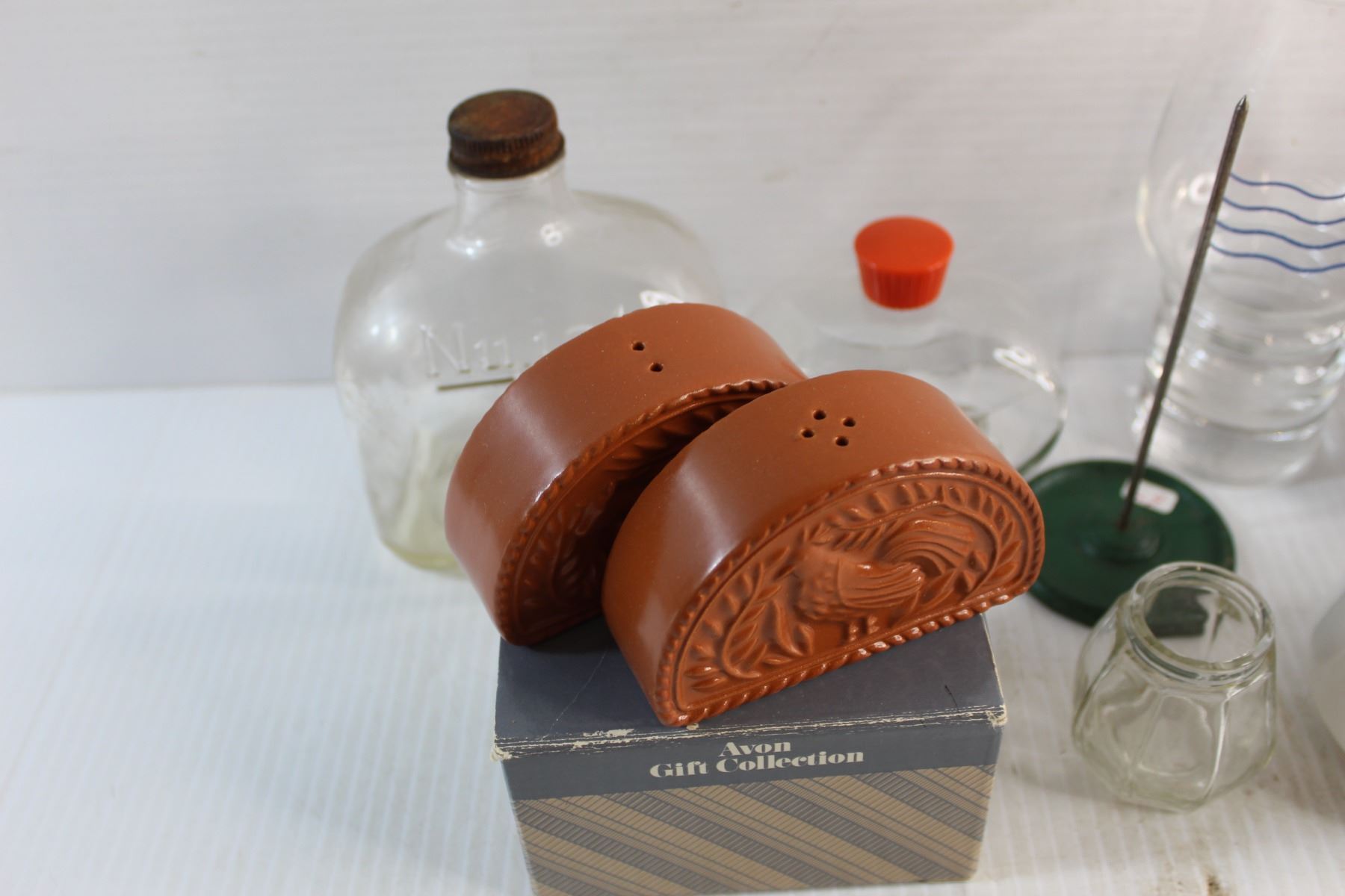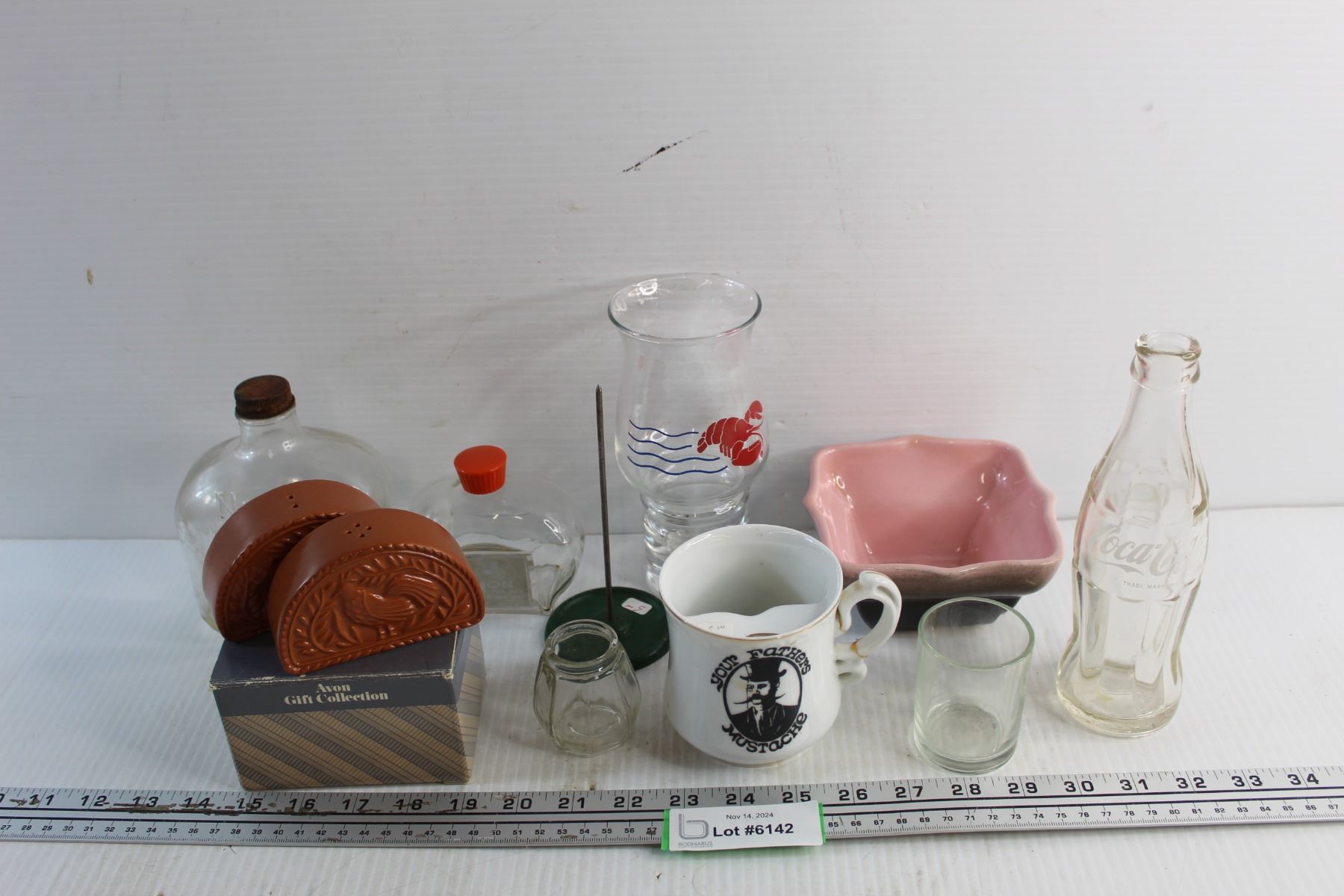 Lot Of Various Bottles, Cups, Misc., Coca- Cola, Avon, Misc.